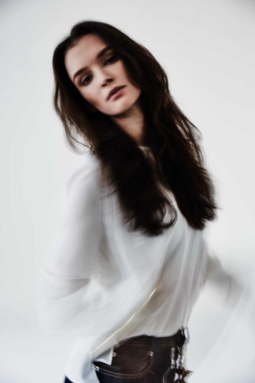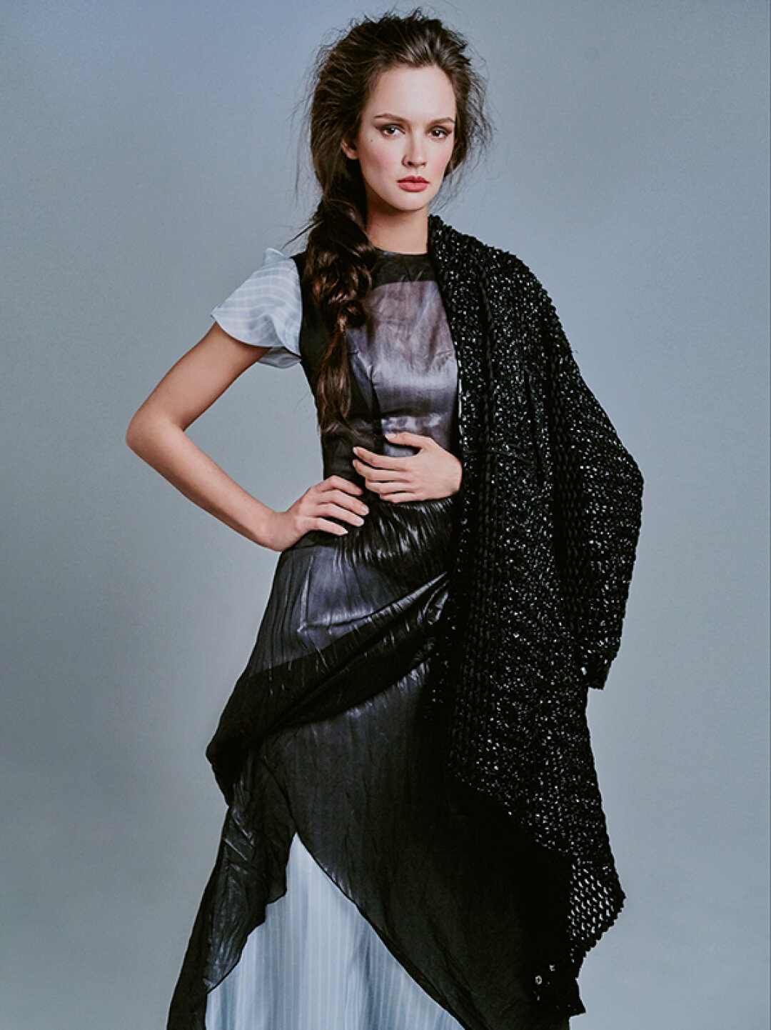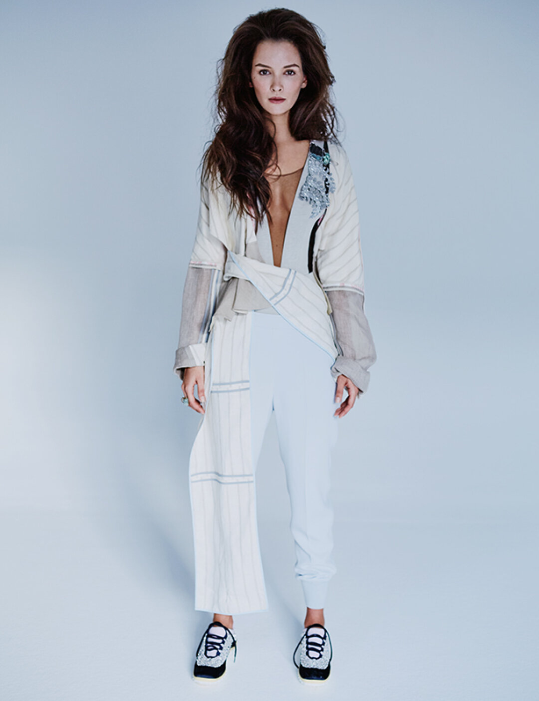 Вместе с фотографом Абдулой Артуевым мы ставили нейроопыты в лаборатории экспериментальной генетики высшей нервной деятельности Института физиологии им. Павлова в Колтушах, сделали съемку-оммаж Ленинградскому рок-клубу (за 2 года до того, как актриса снялась в «Цое» Учителя). А для оформления самой первой нашей совместной фотосессии мы привлекли коллажиста, а сегодня топового художника из пула модной московской галереи Алины Пинской Игоря Скалецкого. Тогда, десять лет назад, мы впервые увидели (и услышали!) Паулину в «Оттепели»: она спела одноименный ламповый романс, ставший титрами и визитной карточкой сериала. Еще не вышел первый сезон брутального детектива-блокбастера «Метод», где Андреева с (несколько влюбленным в ее героиню) Константином Хабенским вычисляла маньяков и душегубов, но уже тогда в фотостудии (не спрашивайте как, но это реально безошибочно понятно людям из индустрии сразу) мы зафиксировали — с этой героиней нам предстоит долгая совместная жизнь. Так и случилось: все это время мы с восторгом и нежностью наблюдаем ломаную, но острую и вдохновляющую траекторию ее судьбы.