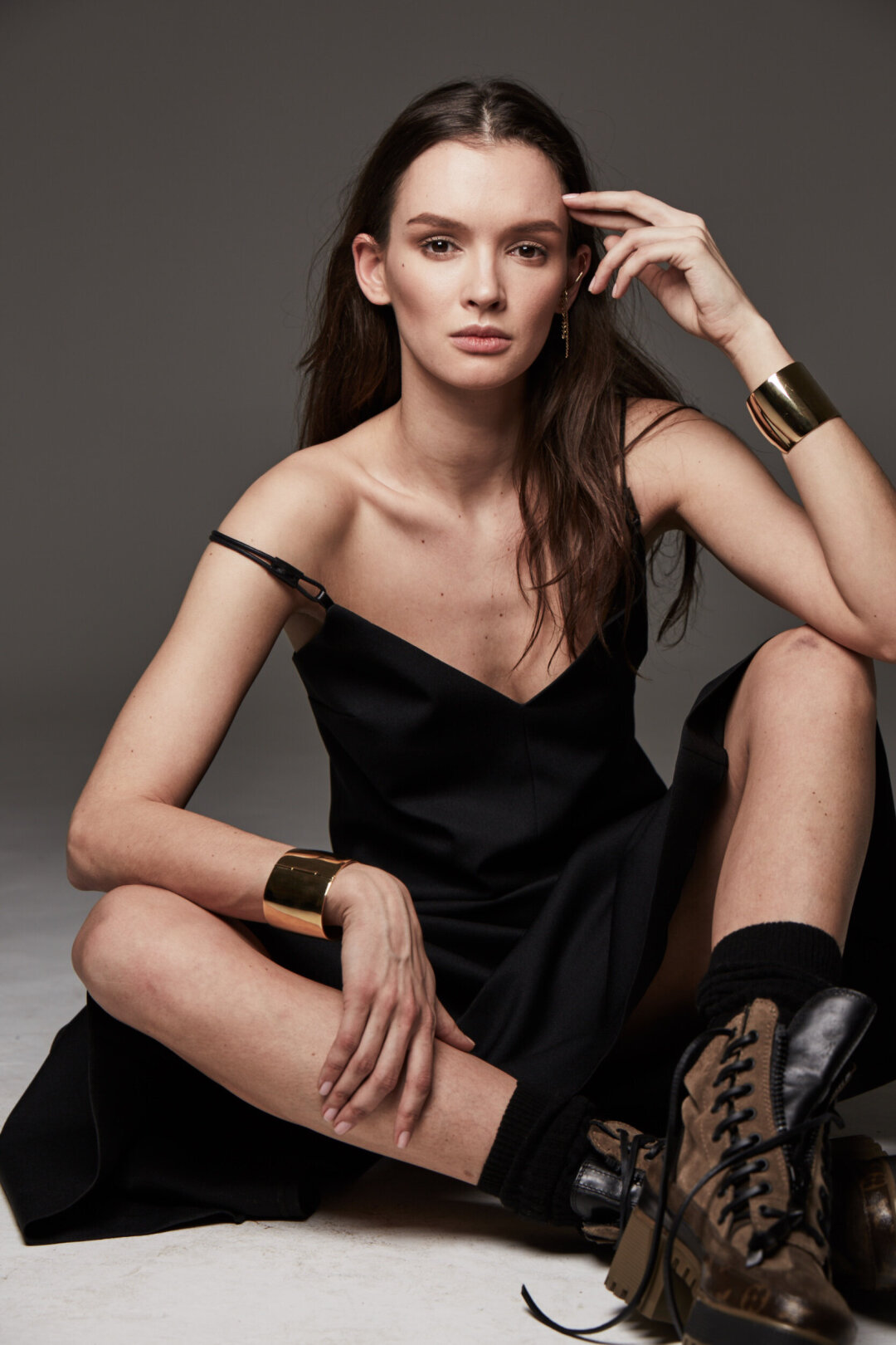 На Паулине: кольца, серьги и кольеPOSIÉ, платье и чулкиSAY NO MORE, обувьRUBAN
