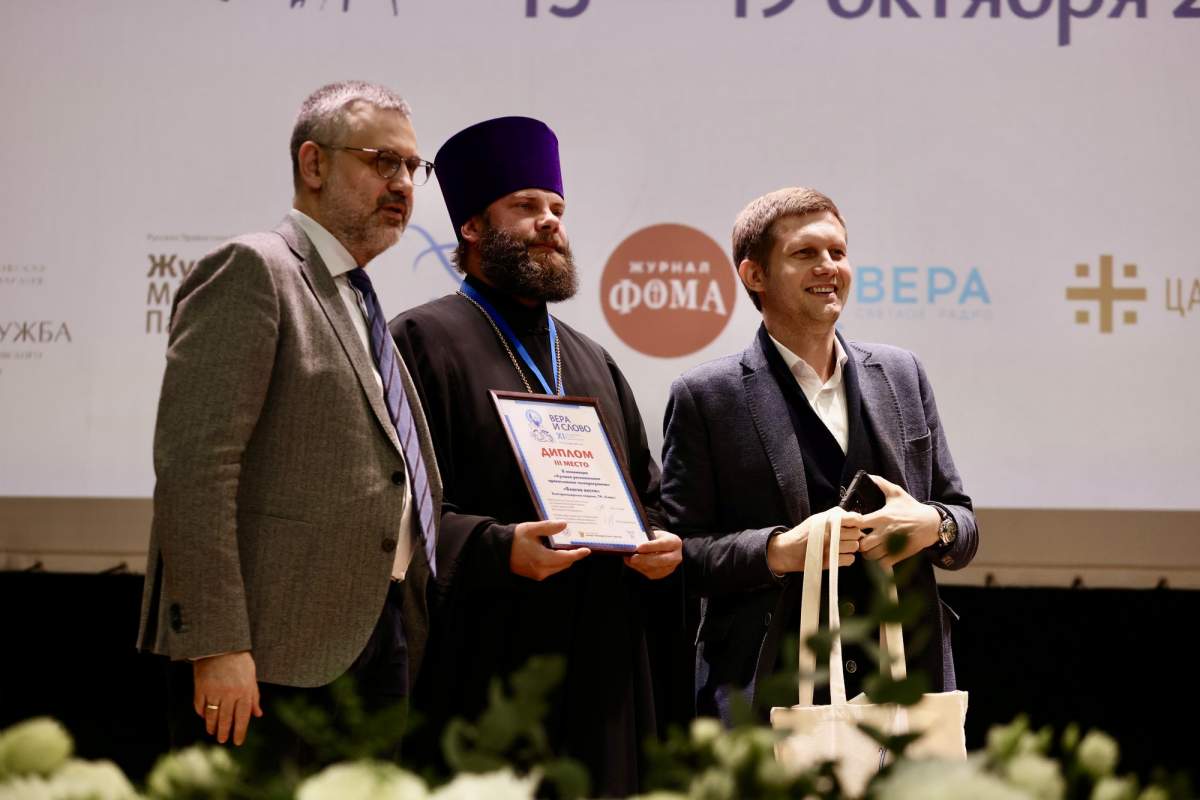 Дипломы и памятные подарки победителям вручили председатель Синодального отдела по взаимоотношениям Церкви с обществом и средствами массовой информации Владимир Романович Легойда и генеральный директор Первого общественного православного телеканала «СПАС» Борис Вячеславович Корчевников.