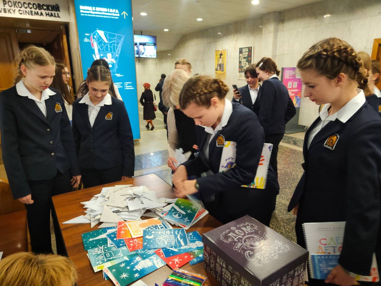 Письма с наилучшими пожеланиями, написанные воспитанницами Пансиона, а также новогодние открытки и рисунки были собраны в специальные коробки с изображением Ангела для последующей отправки на фронт нашим бойцам.