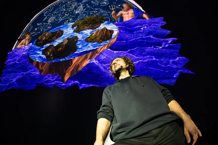 «Новый уникальный опыт», о котором говорят одни из главных специалистов в области отечественного сайт-специфик-театра, — технические возможности, которые даёт необычное пространство планетария и сам Большой Звёздный зал как сценическая площадка. «Купол здесь — не фон, а полноценный участник действия, — говорится в пресс-релизе. — Кроме того, в спектакле будет задействован необычный “актёр” — самый совершенный оптоволоконный проектор звёздного неба “Универсариум М9”. Зрители увидят, как на звёздном куполе планетария “сдвигается” привычная картина мироздания и — рождается новая. В театральное повествование эффектно интегрированы кино и драма, живой план и виртуальная цифровая реальность, элементы музыкального, пластического, циркового, иммерсивного искусства».