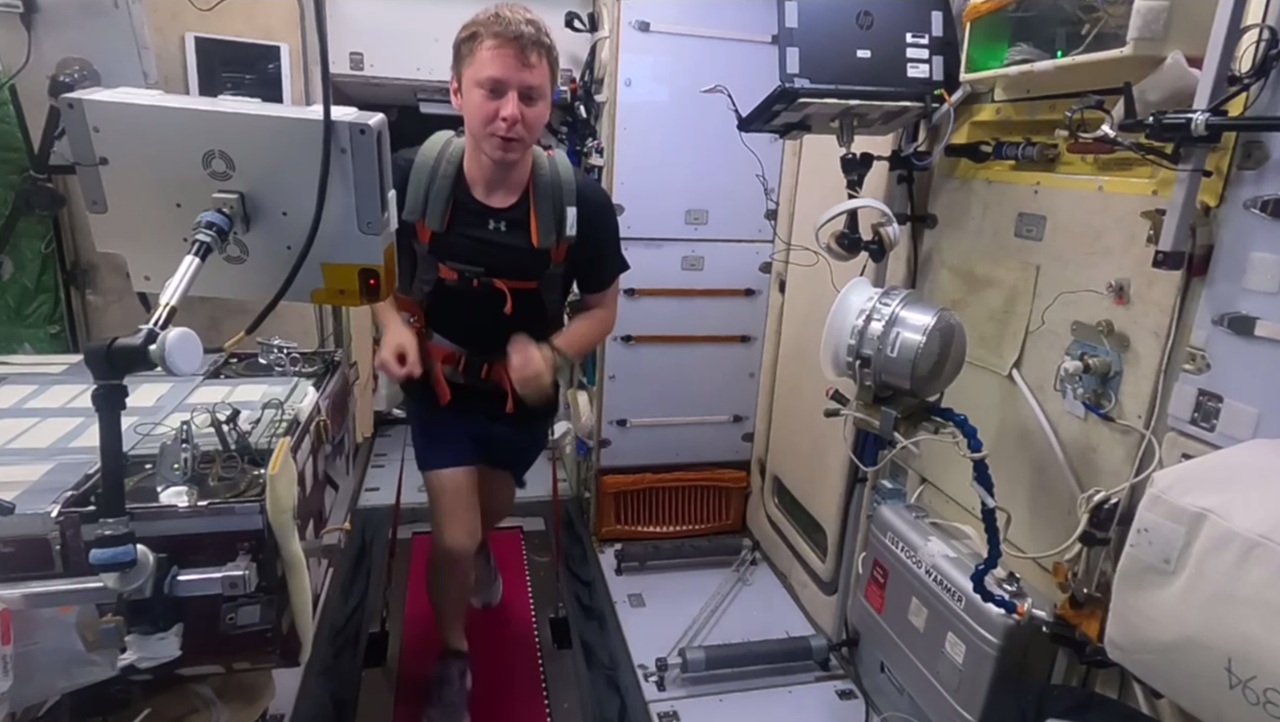 На орбите тренировки обязательны, в том числе и бег, который, как выяснилось, космонавт терпеть не может. На Земле Песков предпочитает бегать на лыжах