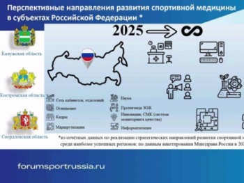 Следует отметить, что среди наиболее важных и перспективных направлений – создание новых структурных подразделений, подготовка квалифицированных кадров, а также проведение активных санитарно-просветительской работы и мероприятий по противодействию употребления допинга в спорте. В частности, в Свердловской области разработан уникальный алгоритм наблюдения за спортсменами. Кроме того, в регионе очень больше количество медицинских работников, которые задействованы в спортивной подготовке и, соответственно, прошли курсы повышения квалификации».