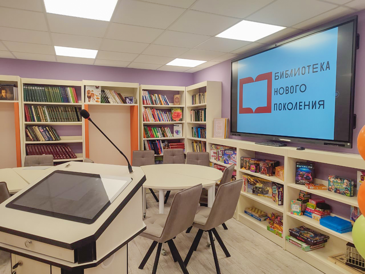 Для этих целей обустроен Центр детского творчества, для которого выделено отдельное пространство и закуплены интерактивные панели, сенсорные дисплеи, новые компьютеры, программно-аппаратный комплекс «Творческая студия Муза». Теперь дети, которые вчера слушали сказки, сегодня могут создавать по ним мультфильмы, а подростки, увлекающиеся блогингом, получают профессиональное оборудование для съемок.
