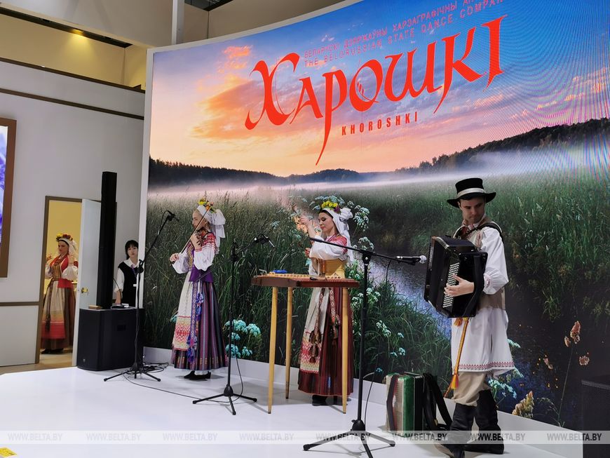 Мы также ставим задачу продвигать социокультурный и туристический потенциал для укрепления имиджа страны на международной арене и повышения ее узнаваемости. На страновом павильоне очень тепло принимается гостями выставки выступление белорусского государственного академического заслуженного хореографического ансамбля "Хорошки", презентация высшего, профессионального и цифрового образования Республики Беларусь, презентация нашего туристического потенциала. В ходе всей выставки организуются интерактивные мероприятия: дегустация блюд белорусской кухни, мастер-классы по плетению венков, изготовлению бус и браслетов, соломоплетению, раздача сувенирной продукции и печатных материалов с белорусской символикой на английском и китайском языках.