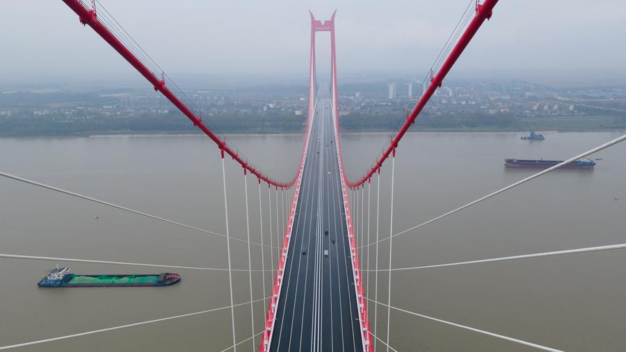 Хэфэй, 6 ноября /Синьхуа/ Первый в Китае двухъярусный вантовый подвесной мост был открыт для движения транспортных средств в четверг в городе Тунлин / пров. Аньхой, Восточный Китай/. Он стал третьим в Тунлине мостом через Янцзы и 11-м по счету на аньхойском участке крупнейшей реки Китая.