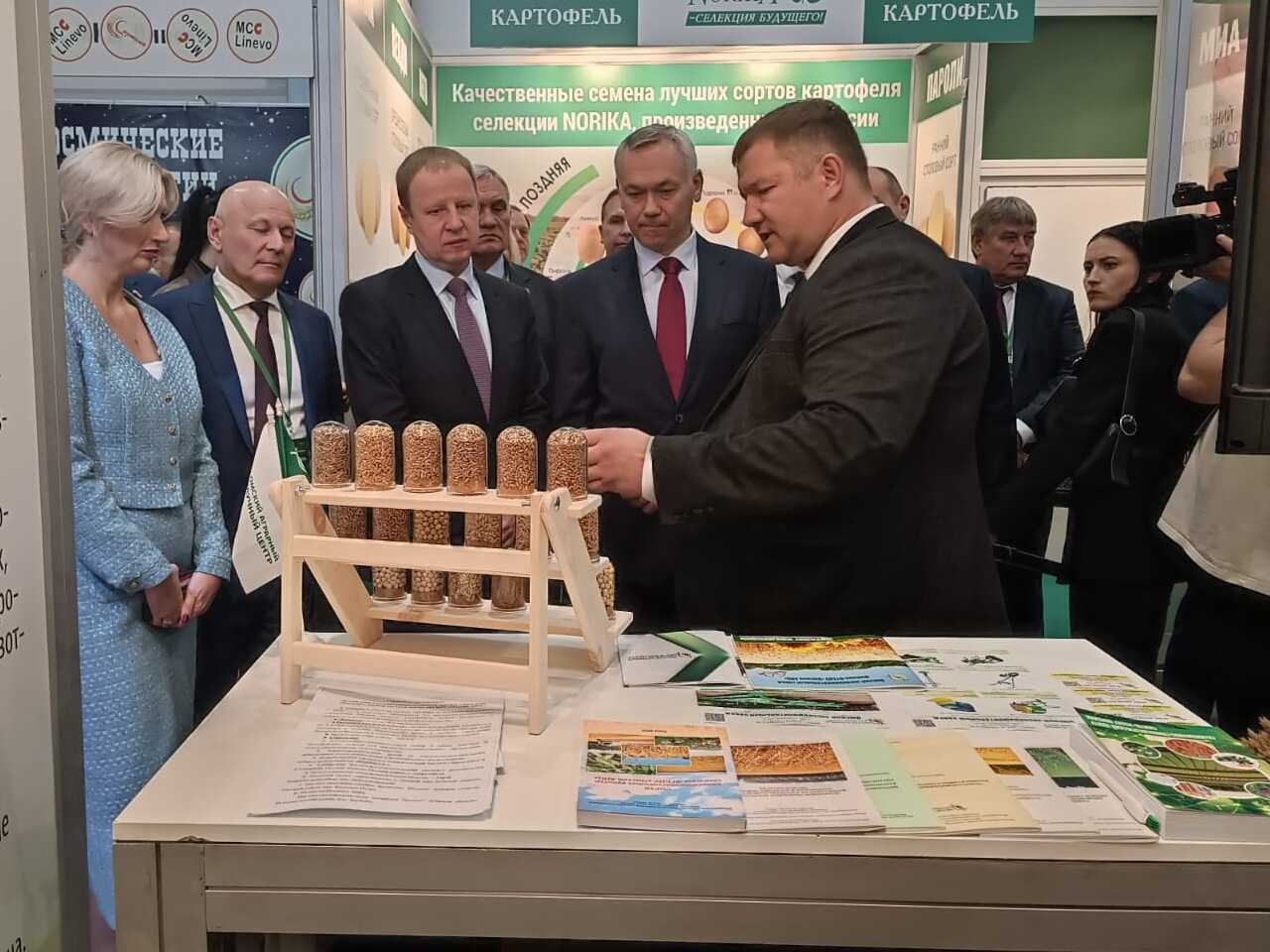 В ходе торжественного открытия выставки делегация Правительства Новосибирской области во главе с Губернатором А.А. Травниковым посетила экспозиции участников агрофорума, в том числе стенд Омского АНЦ, где представлены основные направления деятельности учреждения. Со стендом центра ознакомились министр сельского хозяйства Республики Алтай А.С. Цыгулев, ведущие ученые страны, руководители предприятий АПК.
