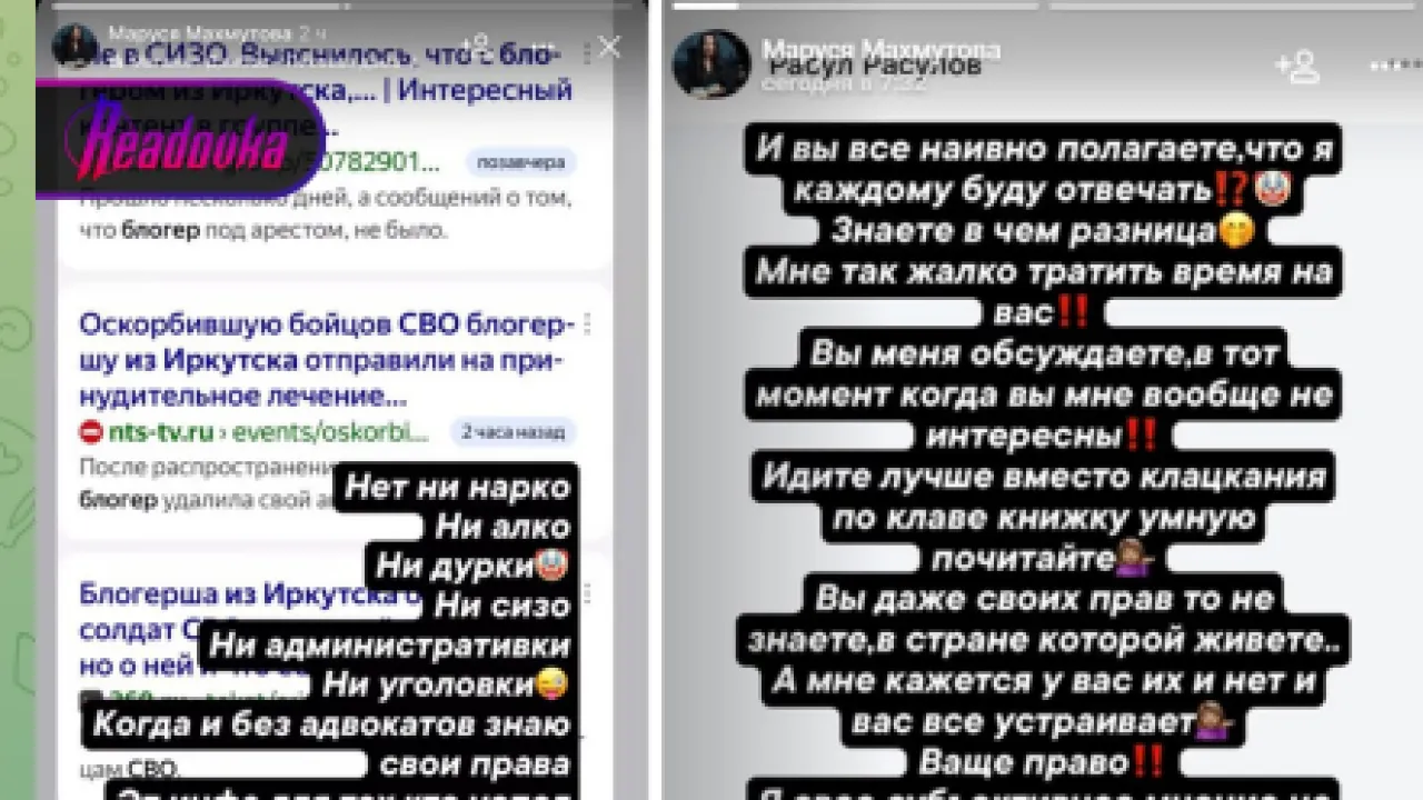 Блогершу Марию Махмутову и иноагента Нику Белоцерковскую* объединяет неприязнь к русским военным. Одна пообещала "выпить вина", если бойцы "сдохнут завтра", вторая собирала на вечеринках деньги для ВСУ. Обе за свои выходки в итоге поплатились.