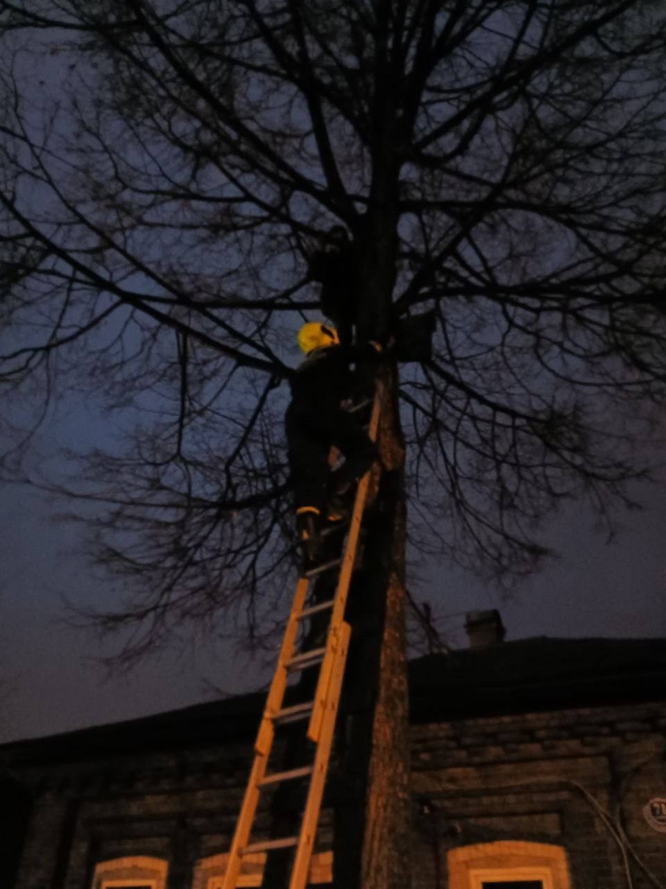 Пришлось звать на помощь спасателей — они аккуратно помогли и девушке, и пушистому спуститься на землю.