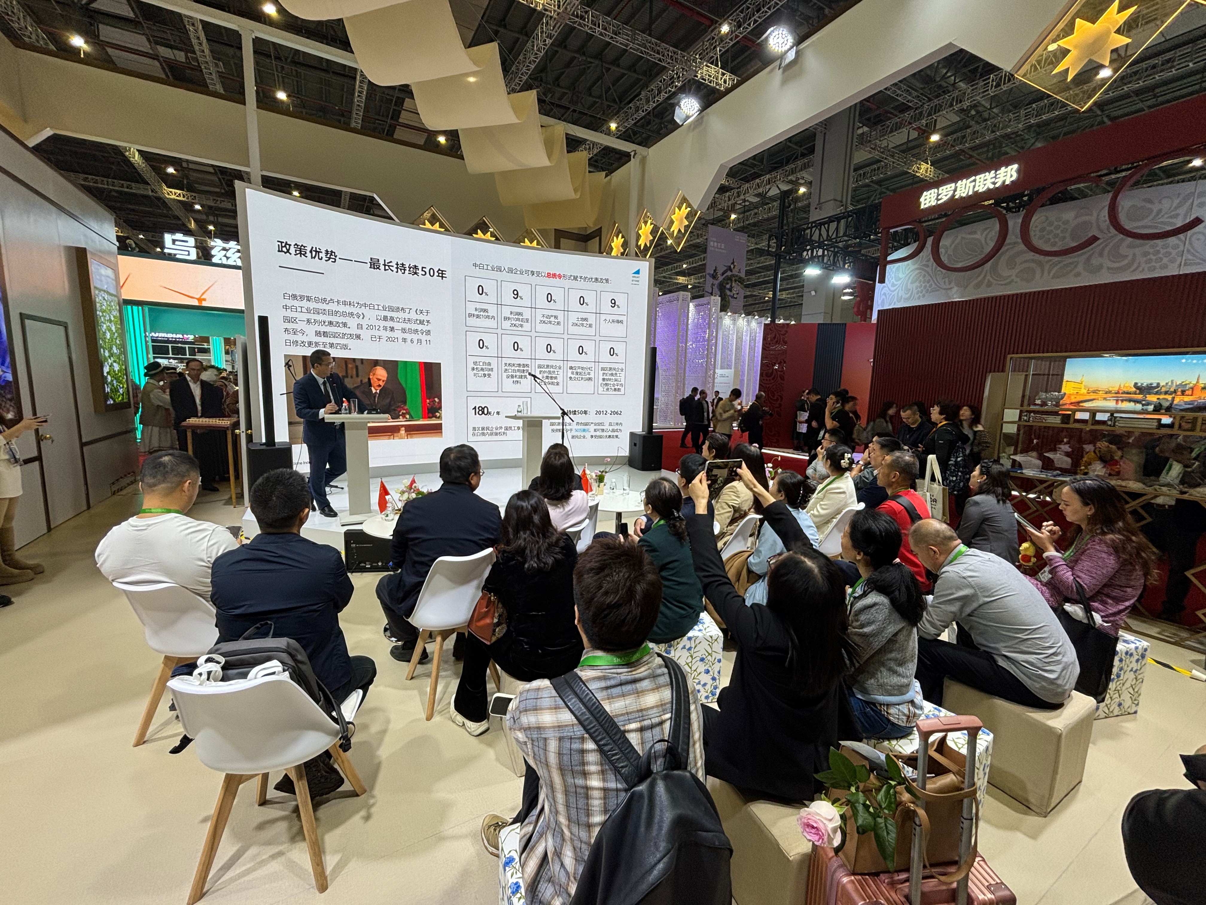 В рамках работы странового павильона организована деловая программа с демонстрацией экономического, инвестиционного, туристического и культурного потенциала Республики Беларусь.