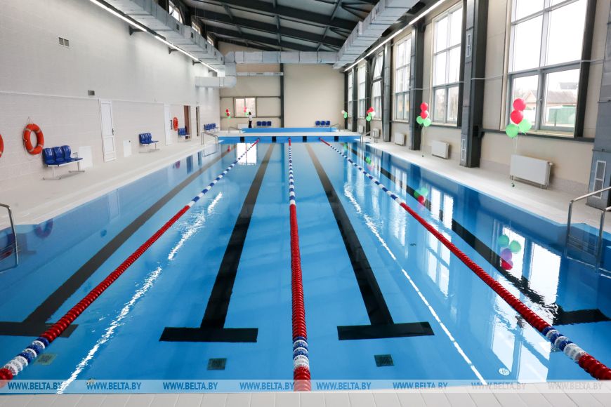Новый бассейн - комфортный и современный. Он рассчитан на 4 дорожки по 25 м. Есть и малая чаша - для детей и тех, кто только начинает учиться плавать. Душевые, мужская и женская раздевалки, камеры хранения - бассейн оборудовали всем необходимым. За день его могут посетить более 240 человек. Также тут расположился зал сухого плавания, где можно проводить спортивные занятия. Стоимость нового бассейна составила почти Br7 млн.