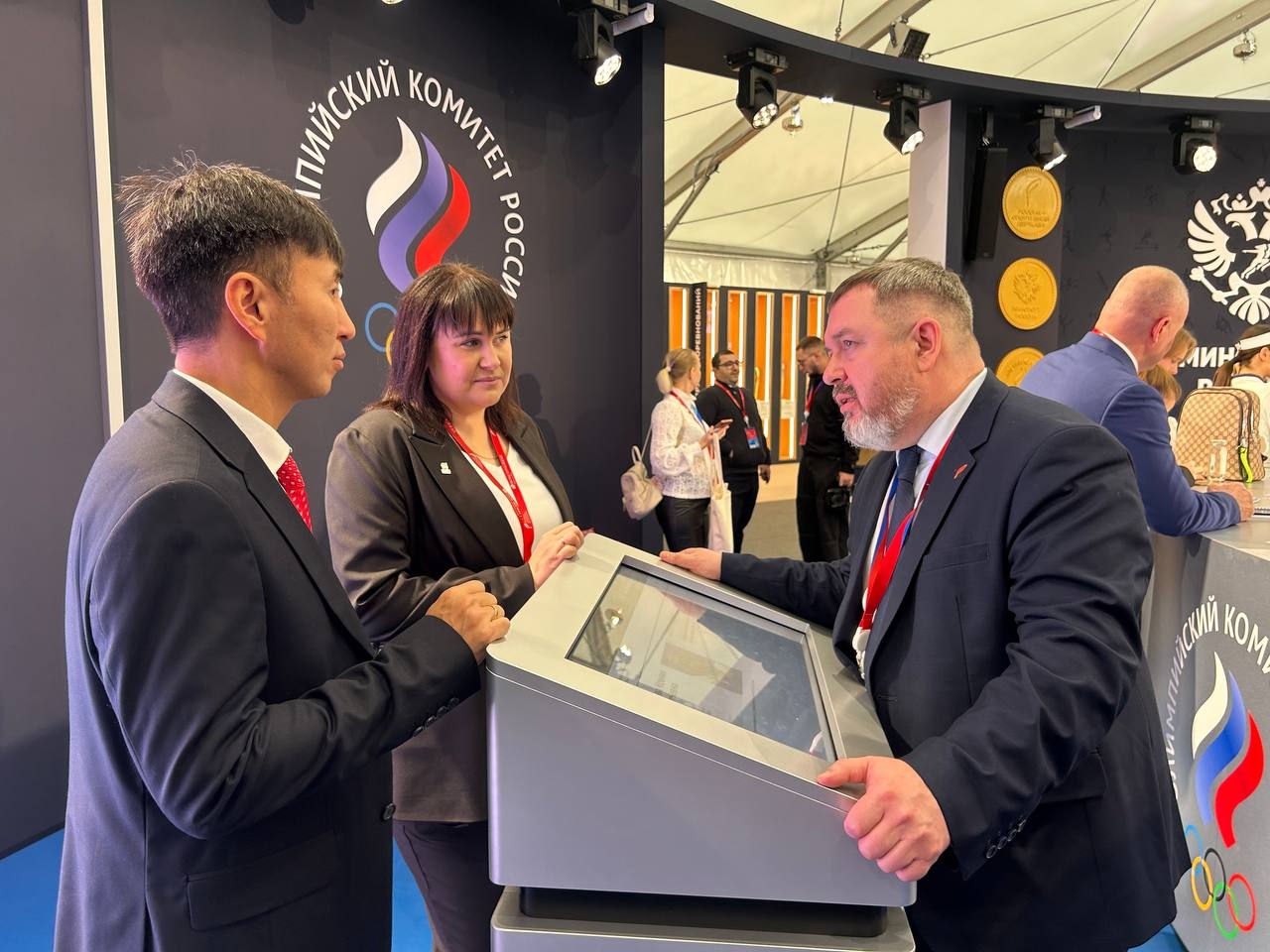 На интерактивном стенде Свердловской области были показаны достижения в развитии физкультуры и спорта региона: титулованные спортсмены, знаковые объекты спортивной инфраструктуры, яркие спортивные события, статистика по числу занимающихся физкультурой и спортом и многое другое.