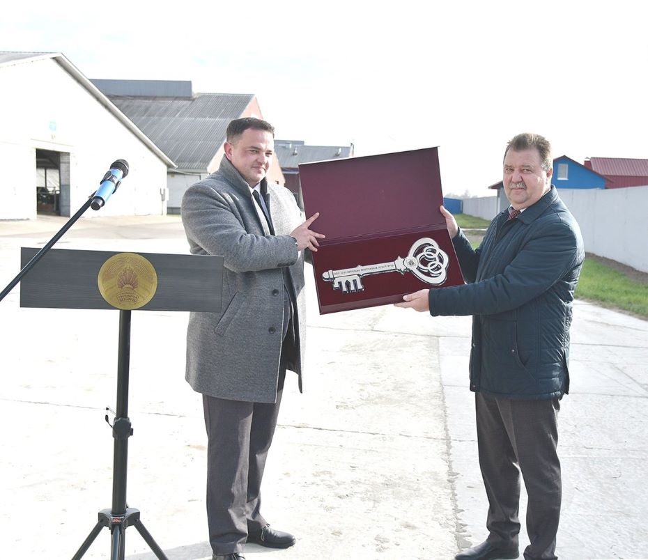 Директор СМТ № 19 г. Лиды Артур Бурба вручил директору СУП «Лаздуны Агро» Брониславу Вершелю ключи от МТК. Затем почетные гости перерезали красную ленту и ознакомились с возможностями производства и планами развития комплекса.