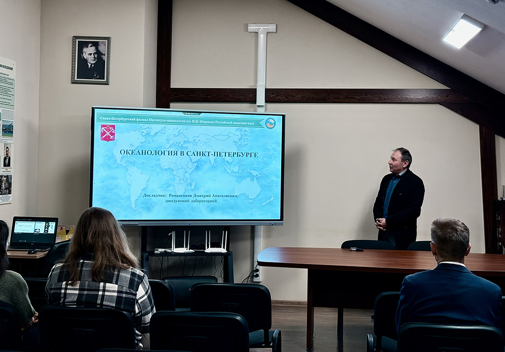 22 октября 2025 года в Санкт-Петербургском филиале Института океанологии им. П.П. Ширшова РАН в рамках Всероссийского лектория Российского научного фонда (РНФ) при поддержке Совета молодых ученых СПбФ ИО РАН состоялась научно-популярная лекция «Динамика вод и динамика запасов: что связывает приливы и популяцию минтая?». Мероприятие собрало 15 участников, большинство из которых — студенты-океанологи.