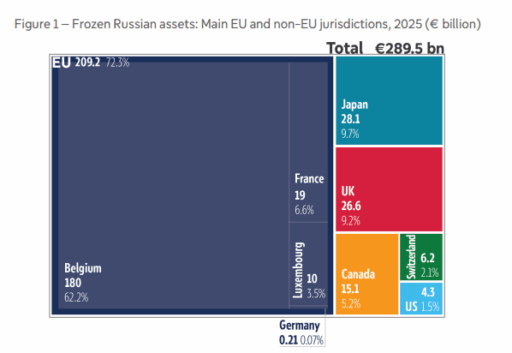 Источник: записка Европейской исследовательской службы Европарламента (EPRS) «Confiscation of immobilised Russian sovereign assets»