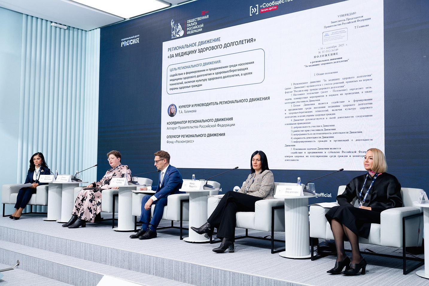 В Национальном центре «Россия» в рамках форума «Сообщество» прошла сессия «Роль регионов в продвижении ценностей здорового долголетия». Дискуссия состоялась при поддержке Фонда Росконгресс. Главная цель обсуждения — выработка практических решений по формированию культуры здоровья и развитию движения «За медицину здорового долголетия» на уровне регионов.