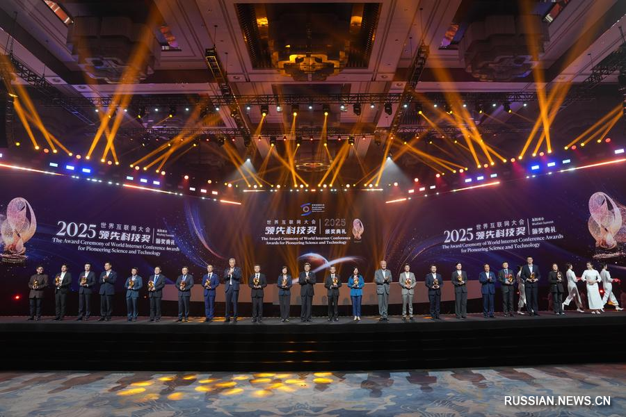 Ханчжоу, 7 ноября /Синьхуа/ Церемония вручения премий Всемирной конференции по вопросам интернета /World Internet Conference, WIC/ 2025 года за новаторские достижения в области науки и технологий состоялась в четверг в поселке Учжэнь /пров. Чжэцзян, Восточный Китай/. Премии за прорывы в передовых областях получили 17 международных проектов.