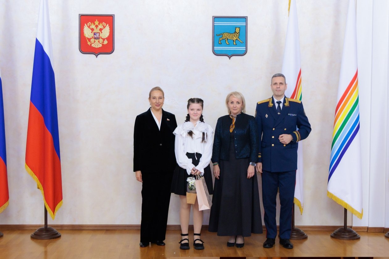 По итогам Всероссийского гражданского патриотического проекта "Дети-герои" наградами Совета Федерации Федерального Собрания РФ отмечены 7 юных жителей региона, проявивших самоотверженность и мужество при спасении людей в чрезвычайных ситуациях. Их родители поощрены Благодарственными письмами главы региона. Награды Мария Костюк вручала совместно с сенатором РФ от ЕАО Натальей Хоровой и руководителем следственного управления СК РФ по Хабаровскому краю и ЕАО Станиславом Белянским.