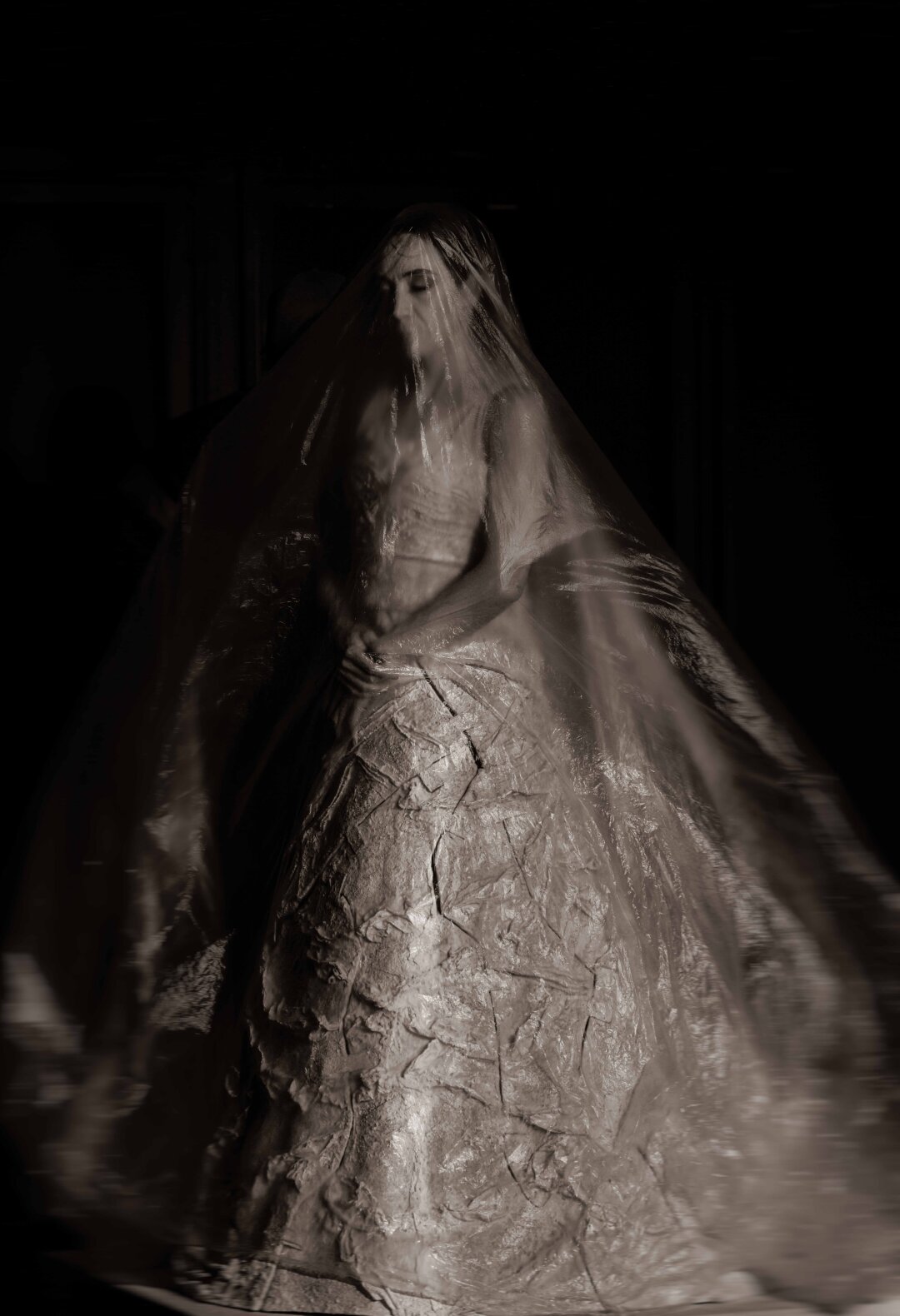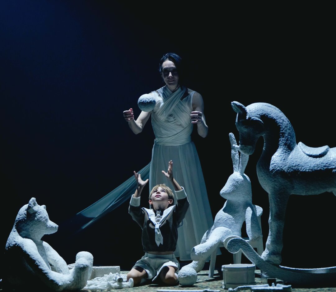 В этой постановке нам важно было показать не просто историю Анны Карениной, а ее внутренний разлом — этот мучительный путь «туда-сюда» между двумя мирами: трепетным и живым миром Вронского и скованным, «фарфоровым» миром, в котором остался Серёжа. Ни один из них не становится для нее домом, и именно в этом противоречии рождается ее трагедия. Мы сознательно уходим от буквальности — вместо слов здесь тело, вместо декораций — метафоричные образы, чтобы зритель мог заново пережить знакомый сюжет, пропустив его через себя.