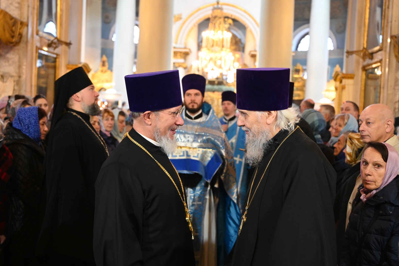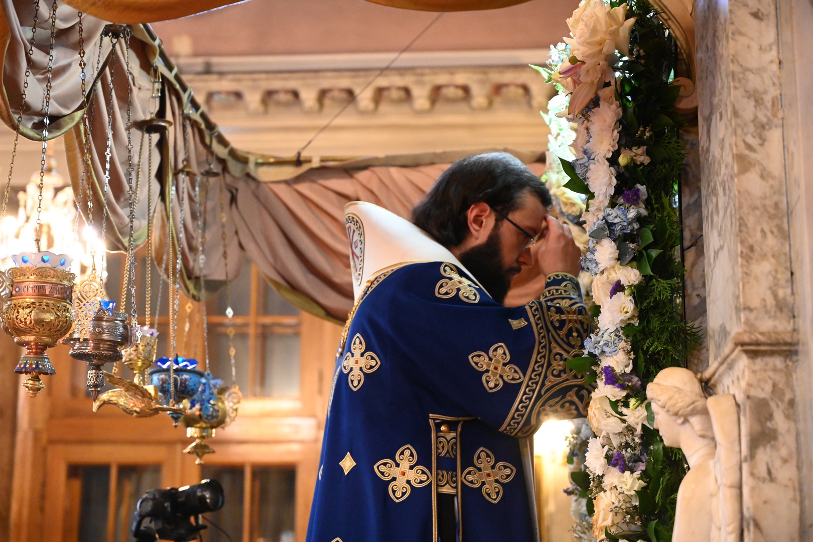 Архипастырю сослужили: секретарь Патриарха Московского и всея Руси по г. Москве, настоятель храма Вознесения Господня у Никитских ворот (Большое Вознесение) протопресвитер Владимир Диваков; советник Патриарха Московского и всея Руси, настоятель храма Воскресения Словущего на Успенском вражке протоиерей Николай Балашов; заместитель председателя ОВЦС, настоятель храма в честь иконы Божией Матери «Всех скорбящих Радость» на Большой Ордынке протоиерей Игорь Выжанов; благочинный Москворецкого церковного округа г. Москвы, настоятель храма Архангела Михаила в Овчинниках протоиерей Сергий Селезнев; сотрудник Службы протокола Патриарха Московского и всея Руси иеромонах Александр (Серпенинов), клирики храма.