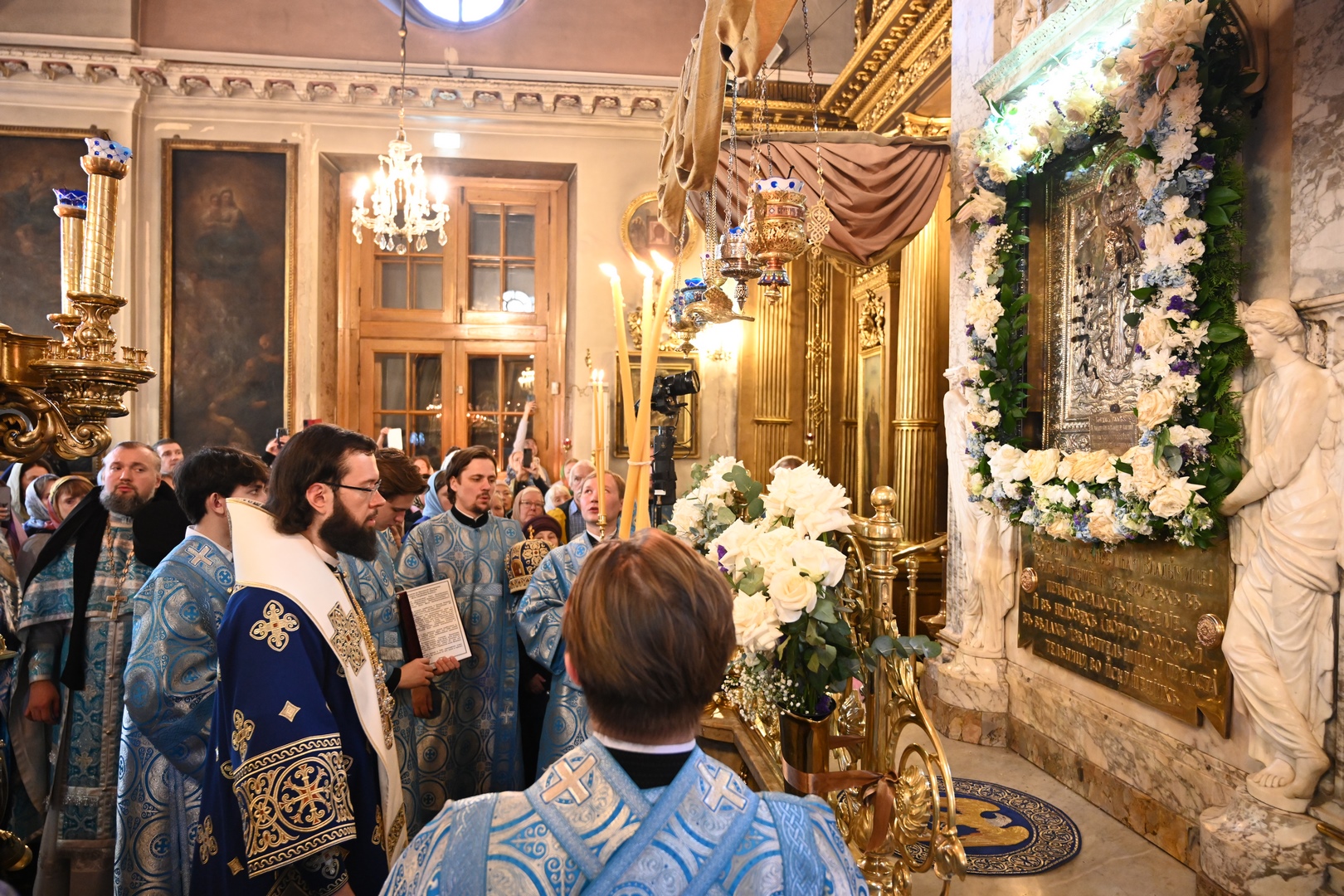 По окончании Литургии было совершено славление перед чудотворной иконой Царицы Небесной «Всех скорбящих Радость». Митрополит Антоний прочитал молитву ко Пресвятой Богородице.