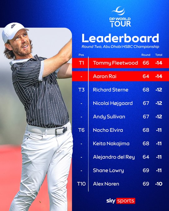 Аарон Раи (Aaron Rai) великолепно провел второй раунд турнира Abu Dhabi HSBC Championship, вписав в свою счетную карточку альбатрос на второй лунке, где он отправил мяч в цель с двух сотен метров. К этому эффектному удару англичанин добавил еще пять бёрди, избежав при этом богги, что позволило Аарону настичь на вершине турнирной таблицы Томми Флитвуда (Tommy Fleetwood), отвоевавшего у местной арены шесть минусов.