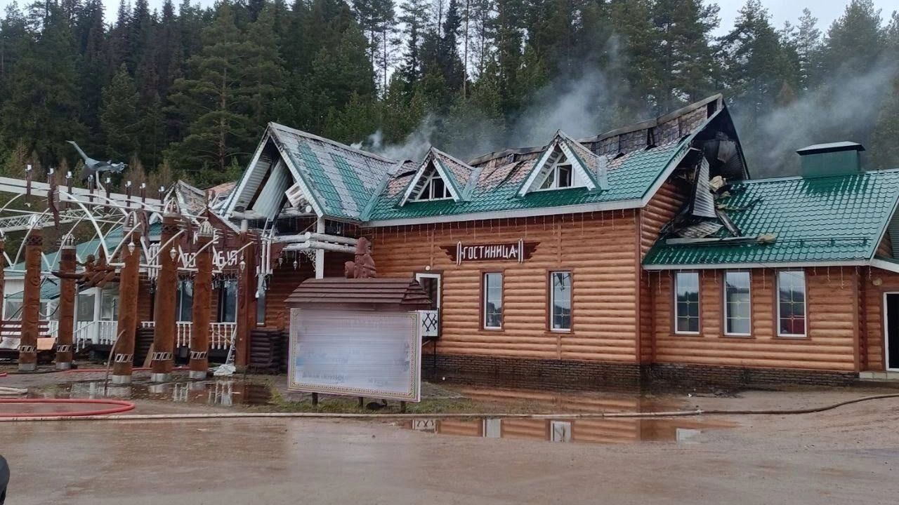 Кафе-гостиница в усадьбе Тол Бабая (удмуртского Деда Мороза) горела в Шарканском районе Удмуртии. Об этом сообщили в пресс-службе Главного управления МЧС по республике.