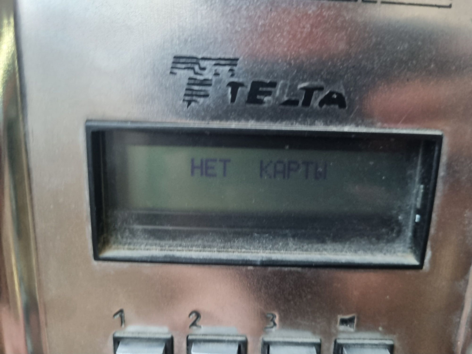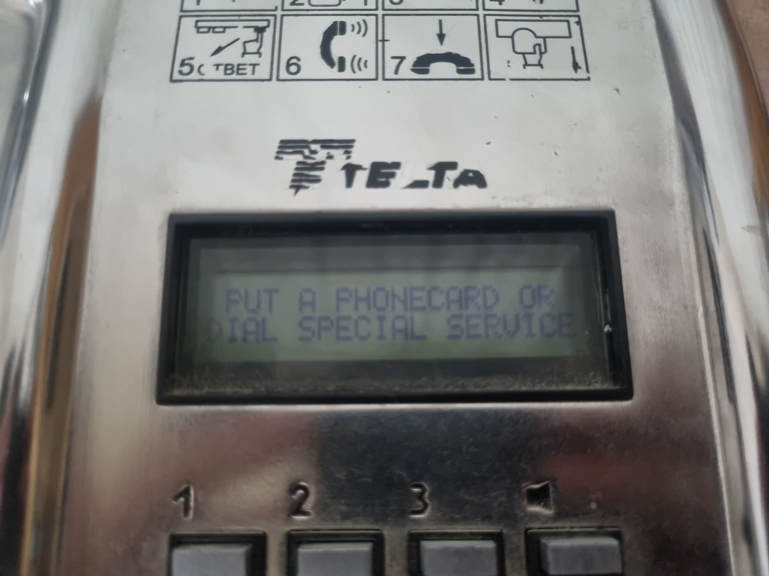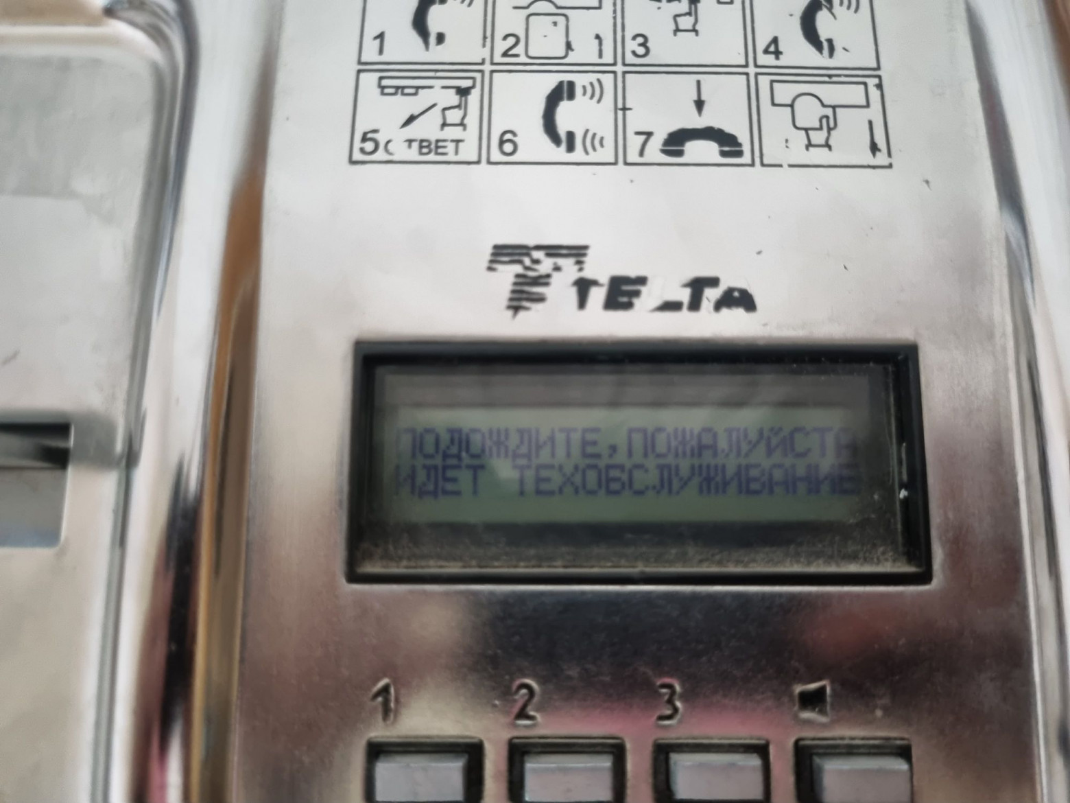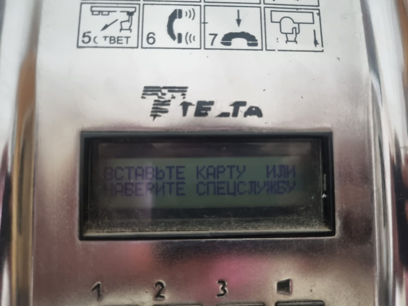 Судя по всему, этот аппарат был выведен из эксплуатации задолго до 2019 года, когда звонки по таксофонам стали бесплатными. Так что он всё ещё ждёт, что в него вставят карту. Которых, увы, уже нигде не осталось.