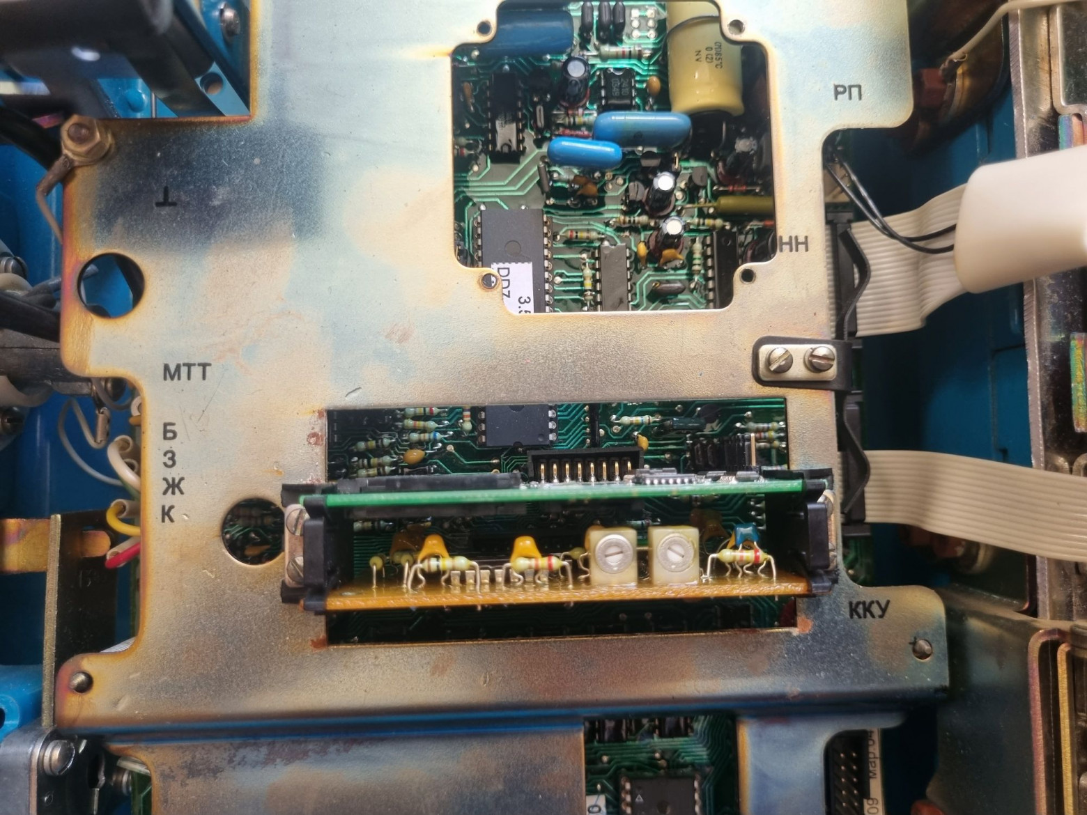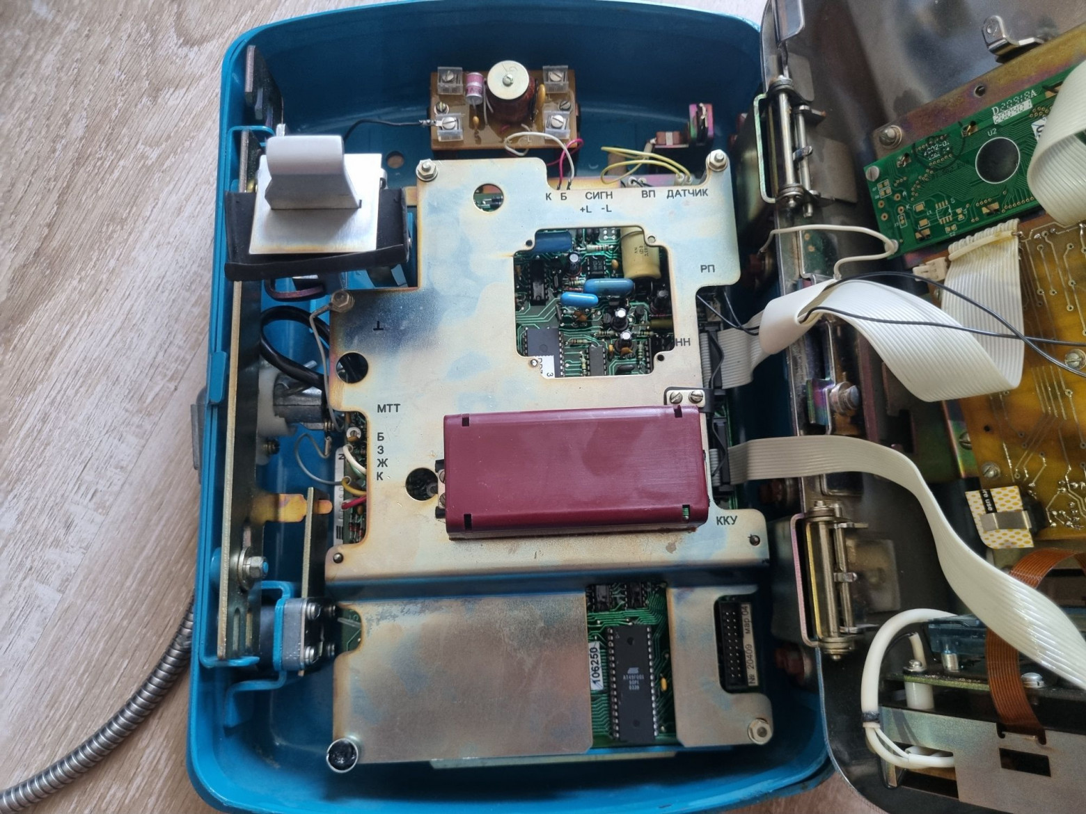 Согласно той самой документации, таксофон состоит из основной платы ЭБ, к которой подключены микротелефонная трубка МТТ, датчик вскрытия корпуса, рычажный переключатель РП, картоконтрольное устройство ККУ, плата модуля безопасного применения МБП, плата номеронабирателя НН и вызывной прибор ВП.