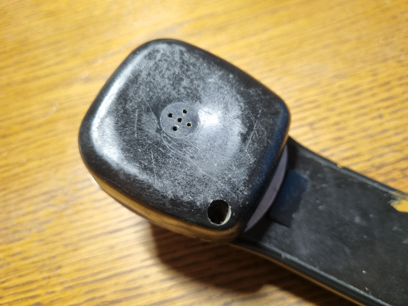Как и в обычном дисковом телефоне, динамик и микрофон закрыты двумя закручивающимися крышками.