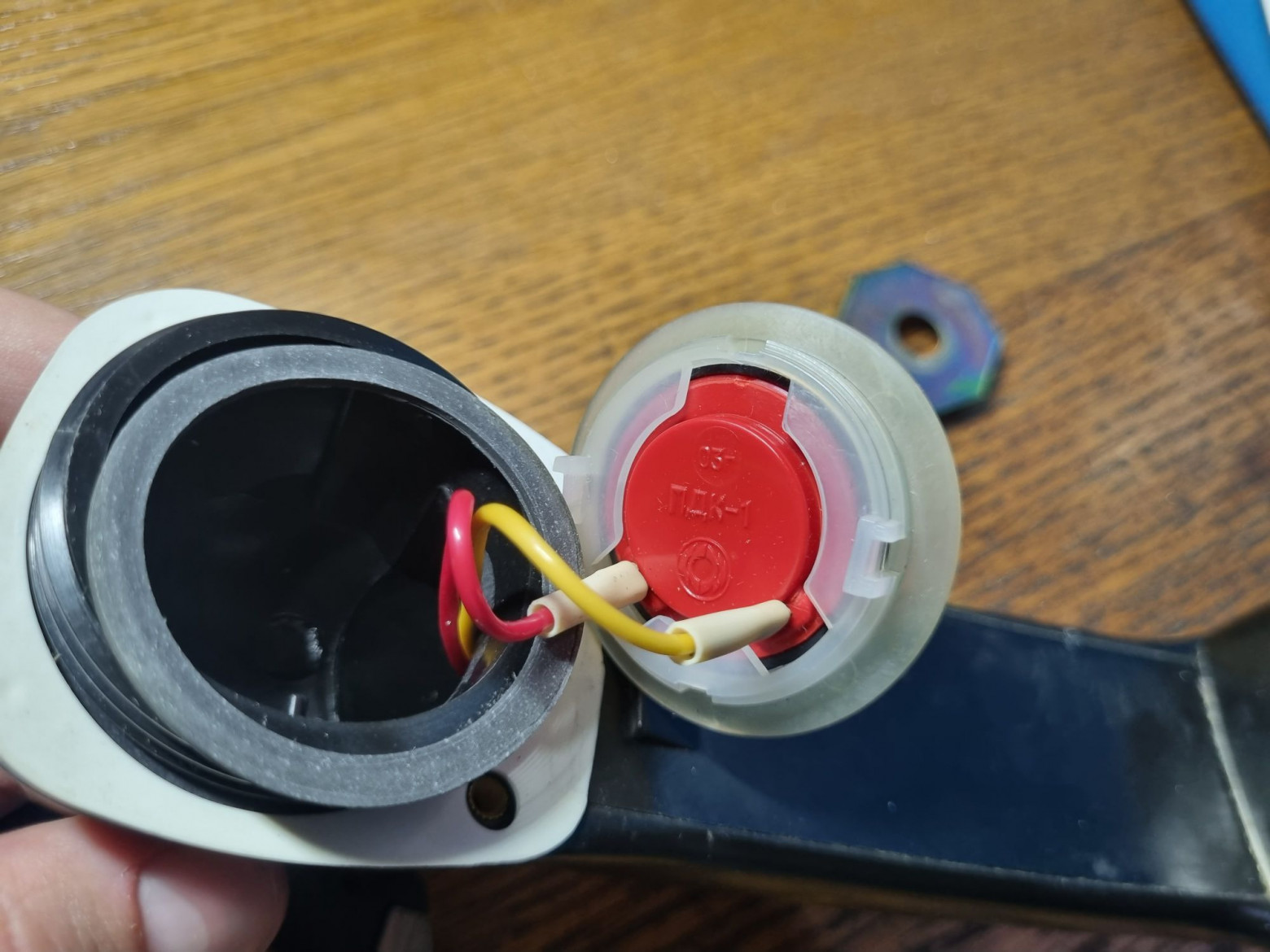 Белая деталь со штырьком — микрик рычажного переключателя.