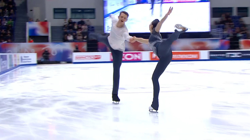 По итогам короткой и произвольной программ спортсмены набрали 215,34 балла. Второе место заняли Анастасия Мишина и Александр Галлямов (201,22), третье — Юлия Артемьева и Алексей Брюханов (190,55).