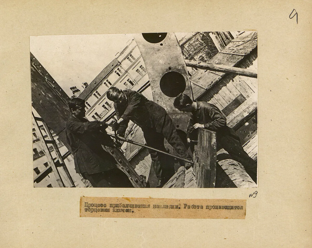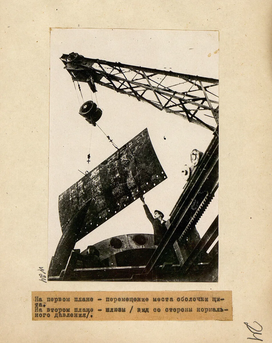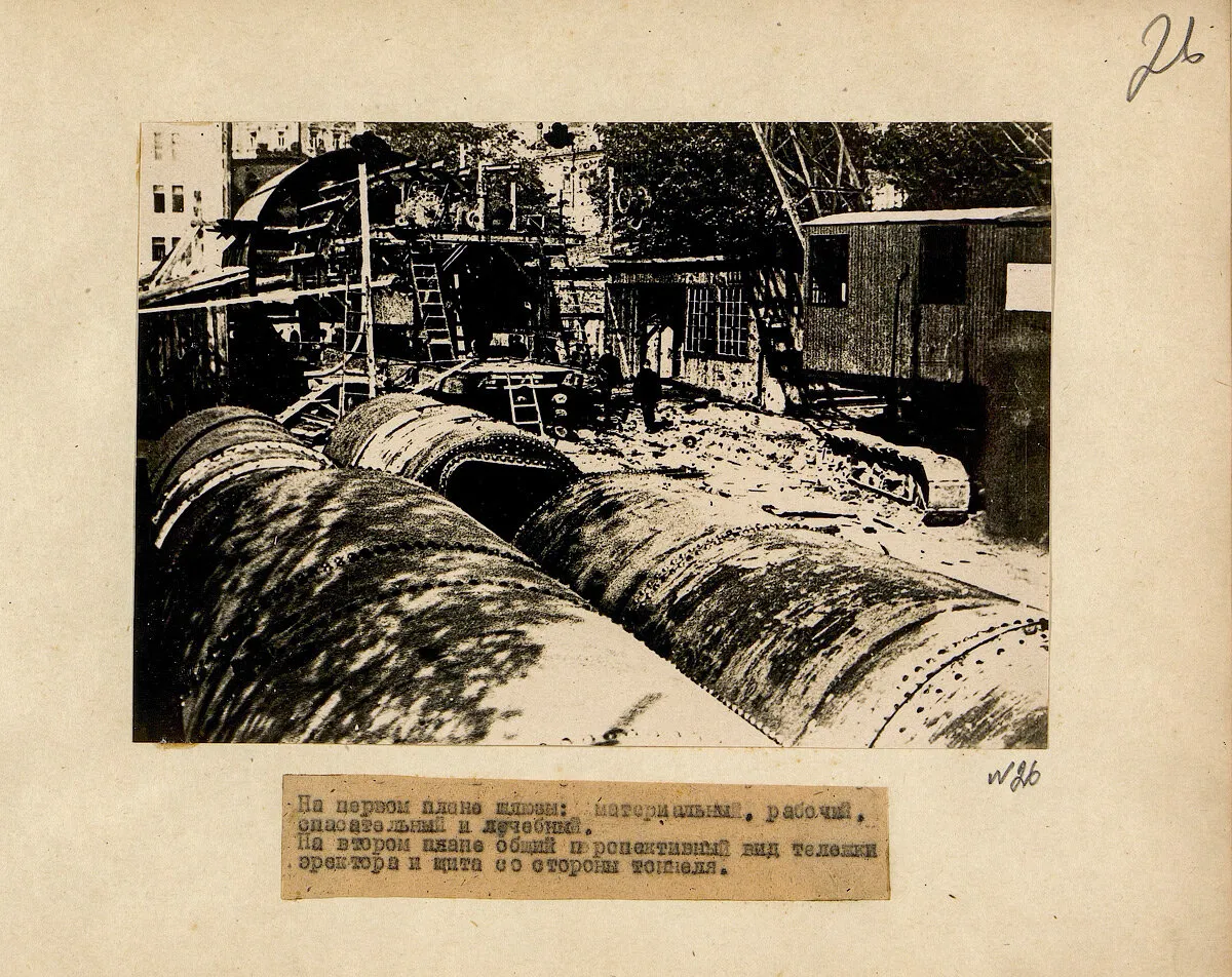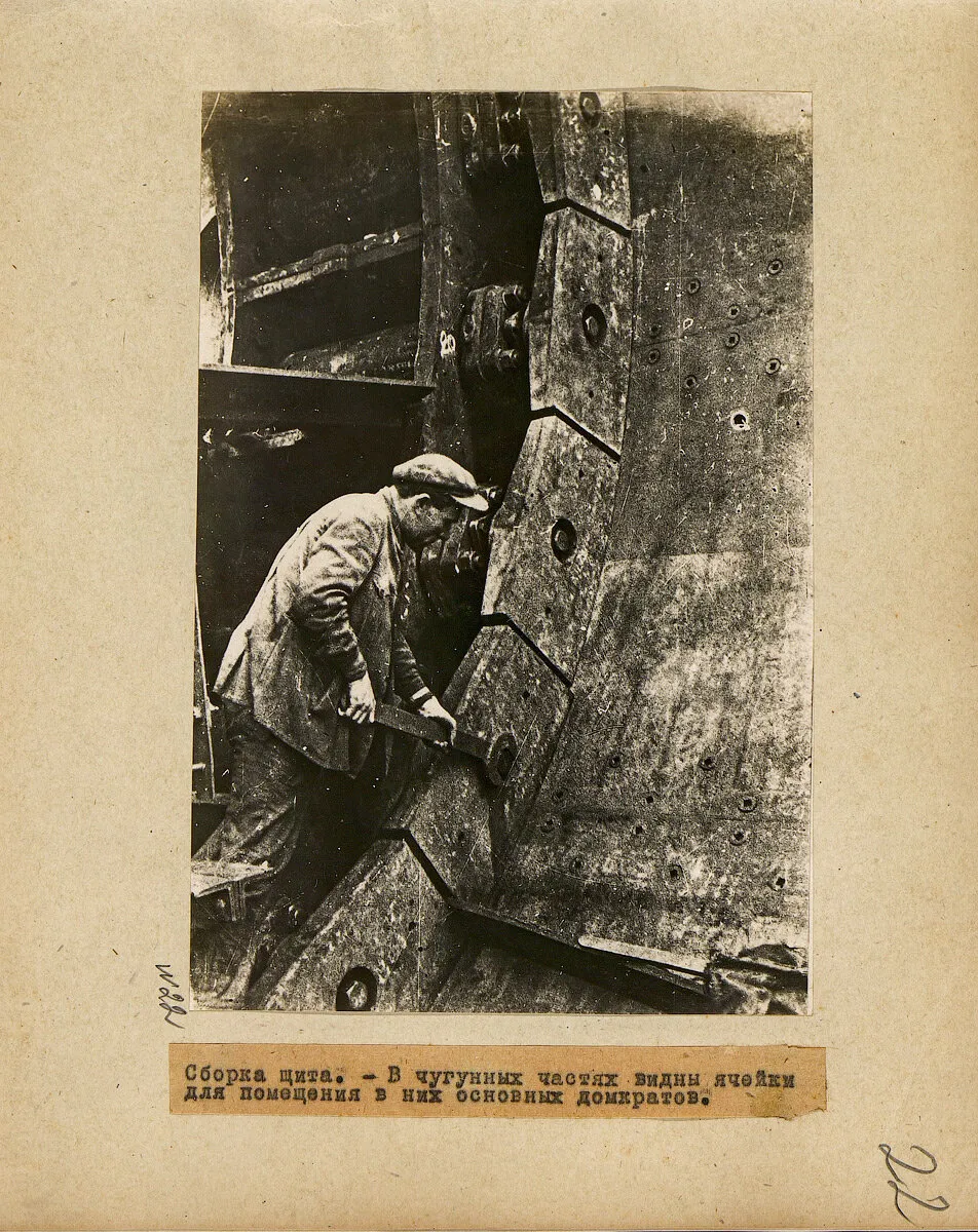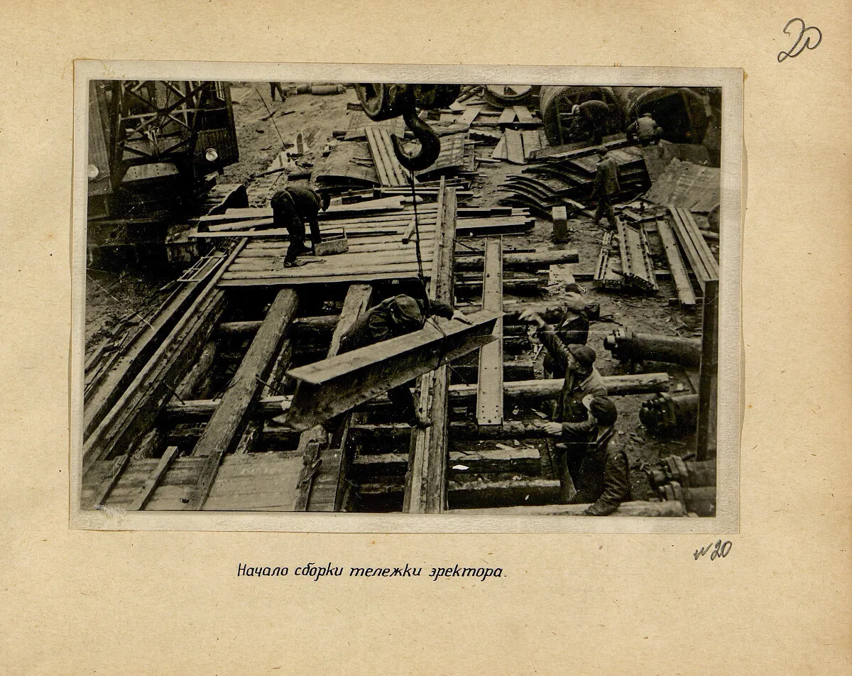 В Центральном Архиве города Москвы это дело называется: «Фотоальбом работ по монтажу проходческого щита за 1933 г. Том II» (ЦАГМ. Ф. Р-665. Оп. 1. Д. 97.). Первый том содержит почти такие же фотографии, но там они не подписаны. В дальнейшем мы с вами посмотрим и его.
