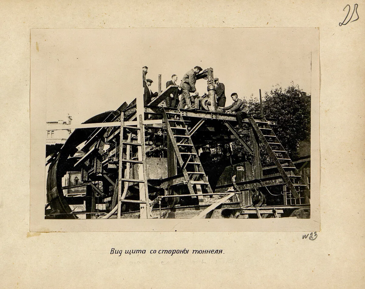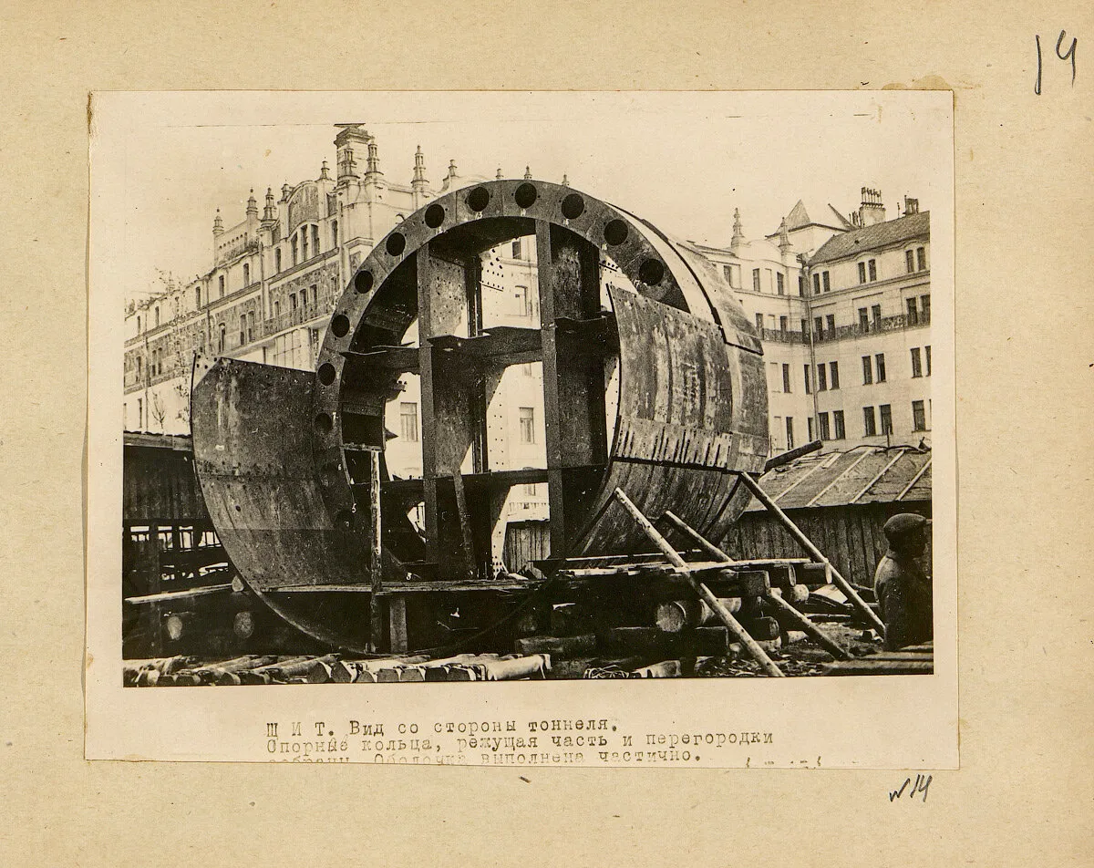 На строительстве первой очереди Московского метрополитена в 1931-м работало два проходческих щита. Первый был закуплен в Англии у фирмы «Маркхем», а второй сделан советскими специалистами на основе английского щита с доработками. Например, гидравлические моторы были заменены на электрические.