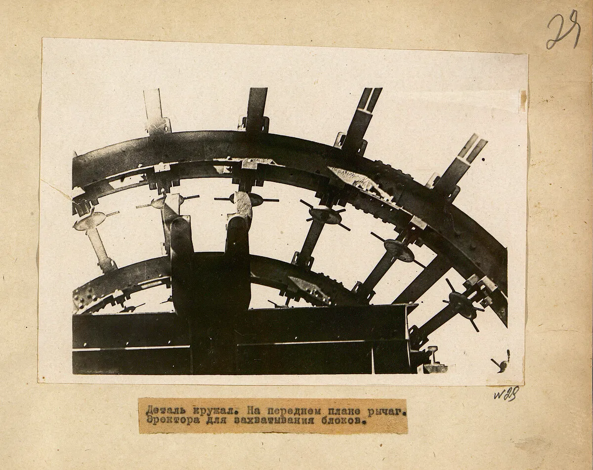Деталь кружал. На переднем плане рычаг эректора для захватывания блоков.