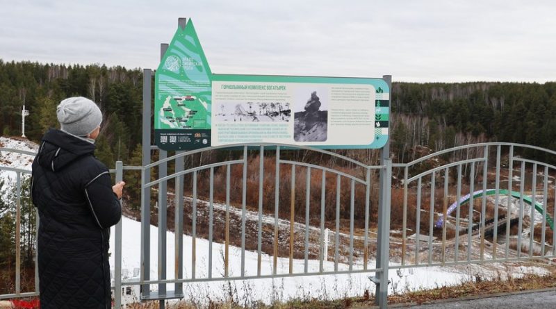 Информационные стенды уже установлены в нескольких точках: на месте старта, на территории, где ранее производилась выработка руды, на локациях, откуда открывается вид на Майскую поляну и на скалу Три брата, у выхода из ущелья, где когда-то работала штольня, у слияния Каменки и Исети и у висячего моста, где была паромная переправа.