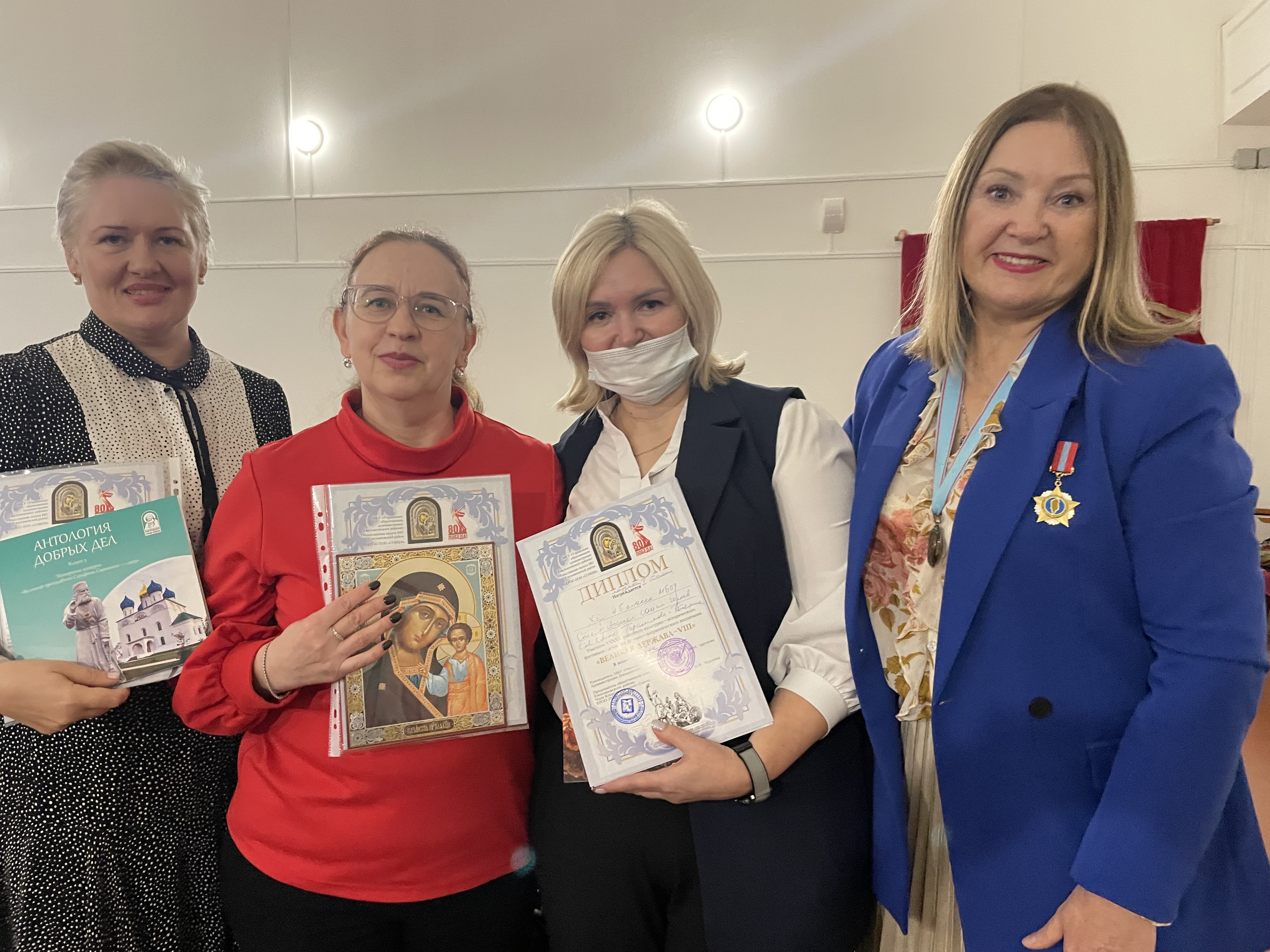 Член жюри, благотворитель фестиваля Евгения Ахмедова вручила победителям иконы Казанской Божьей Матери, как духовный символ праздника народного единства.