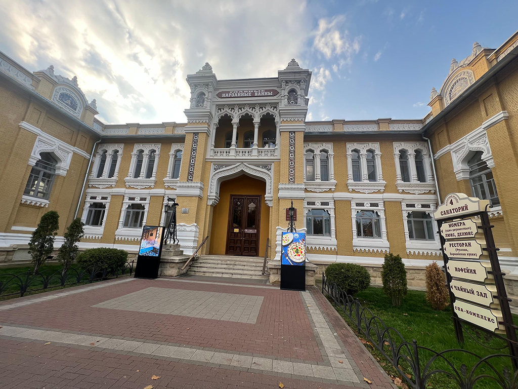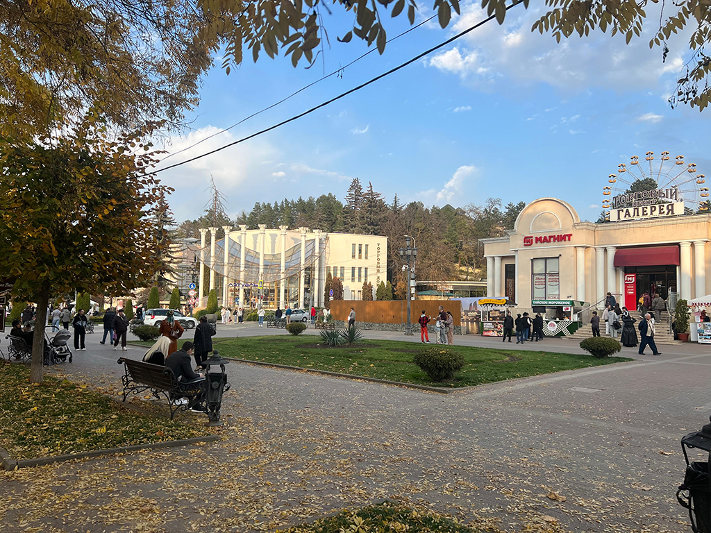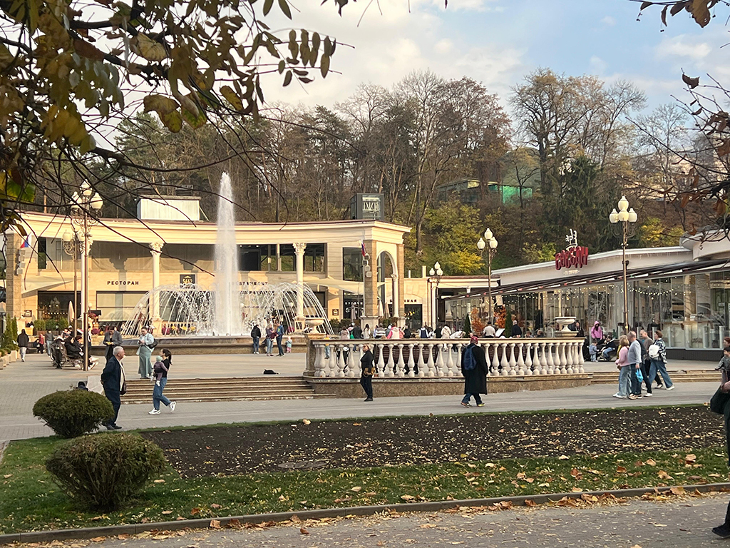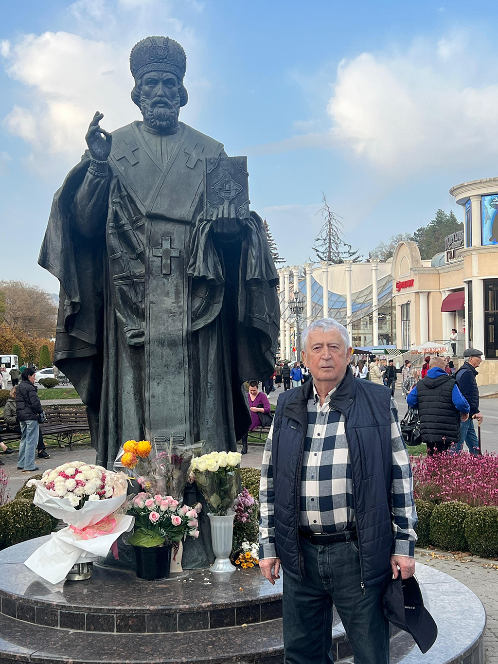 Ректор РМАТ Е.Н. Трофимов у памятника Николаю Чудотворцу, который находится в Кисловодске на Курортном бульваре,