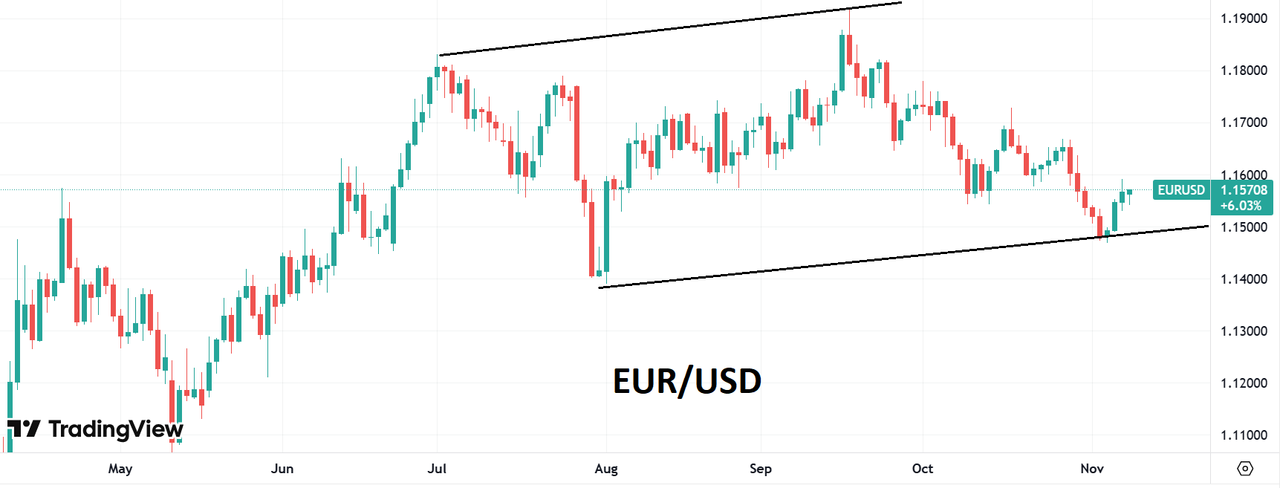 После снижения в течение трех сессий подряд индекс доллара в понедельник стабилизировался около 99,6, поскольку Сенат США проголосовал за возобновление финансирования правительства. По итогам прошлой недели DXY показал снижение на 0,2%. Курс евро этим утром находится возле отметки 1,156.