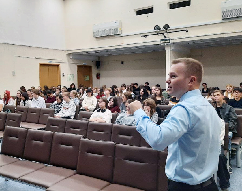 По приглашению администрации школы заведующий кафедрой туризма и гостиничного дела РМАТ, к.п.н., доцент Арсений Роман Михайлович и главный специалист центра науки и инноваций, преподаватель кафедры Мезинова Анастасия Алексеевна в рамках разговоров о важном с учащимися 10-11 классов провели занятие на тему «Как открыть свой бизнес».