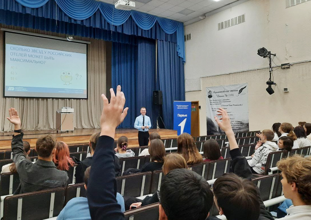 Учащиеся школ узнали об успешных выпускниках РМАТ, которые открыли свой бизнес в туризме или управляют структурными подразделениями туристских предприятий. Приятное удивление вызвал пример выпускника Школы №1194 Полякова Егора, который в текущем учебном году завершает обучение в РМАТ по направлению высшего образования «Гостиничное дело». В феврале 2025 года Егор принял участие в Международном конкурсе барменов, кулинаров и кондитеров в Калькутте (Индия).