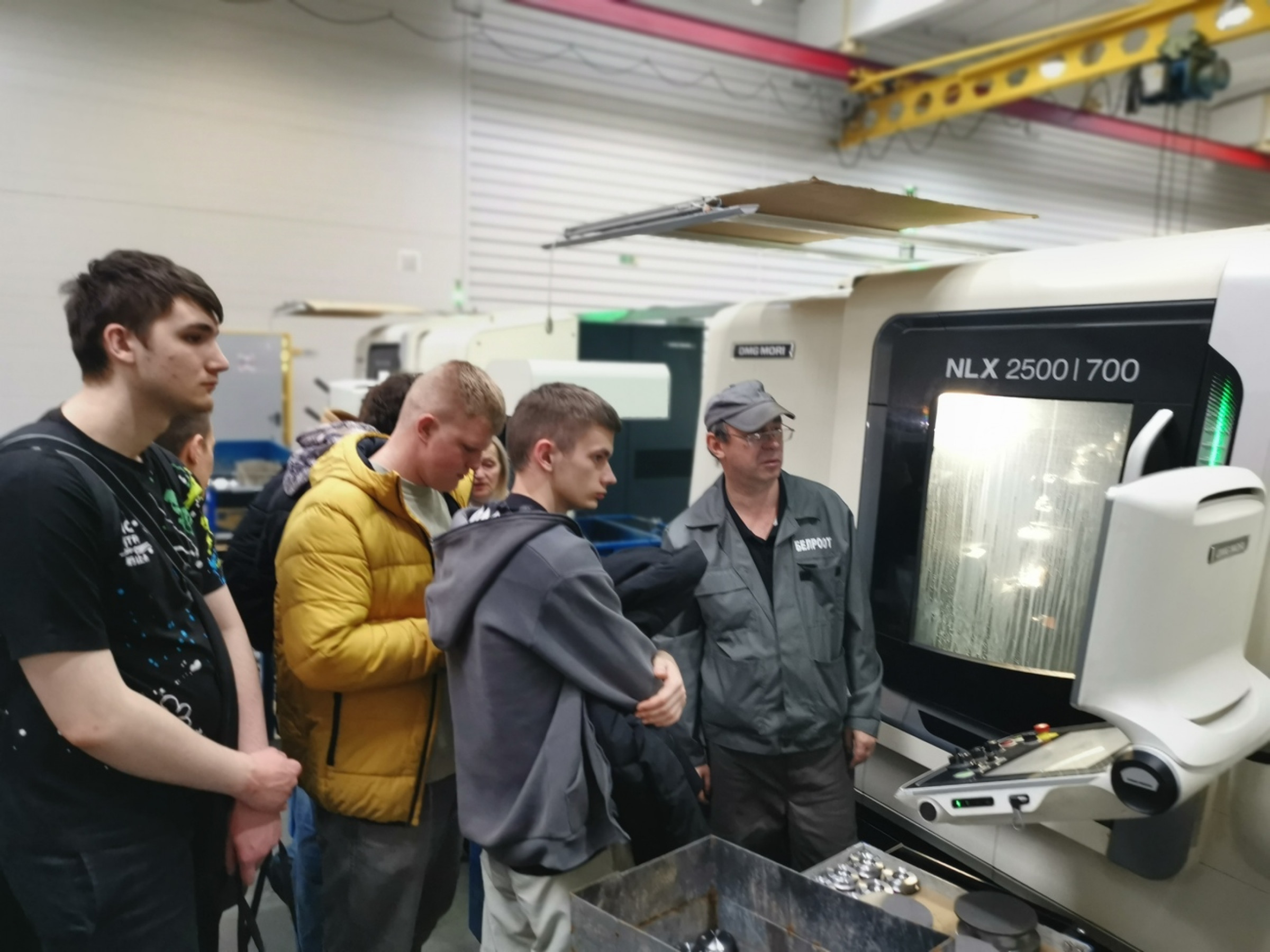 Наиболее впечатляющей частью визита, без сомнения, стала демонстрация работы промышленных роботов и обрабатывающих центров от мирового лидера в области станкостроения – компании DMG MORI, которые являются олицетворением современных производственных технологий. Сотрудники компании подробно рассказали об устройстве и принципах работы современных четырех и пяти осевых станков с ЧПУ, раскрыв преимущества многокоординатной обработки. Наблюдая за работой станков, будущие инженеры увидели, как возникает мост между цифровым миром и физическим: сложное программное обеспечение руководило оборудованием, которое с филигранной точностью воплощало виртуальный проект в реальном металле.