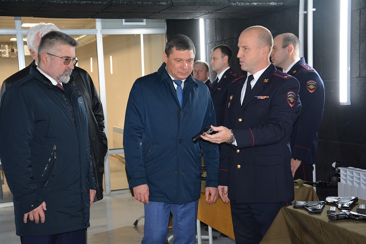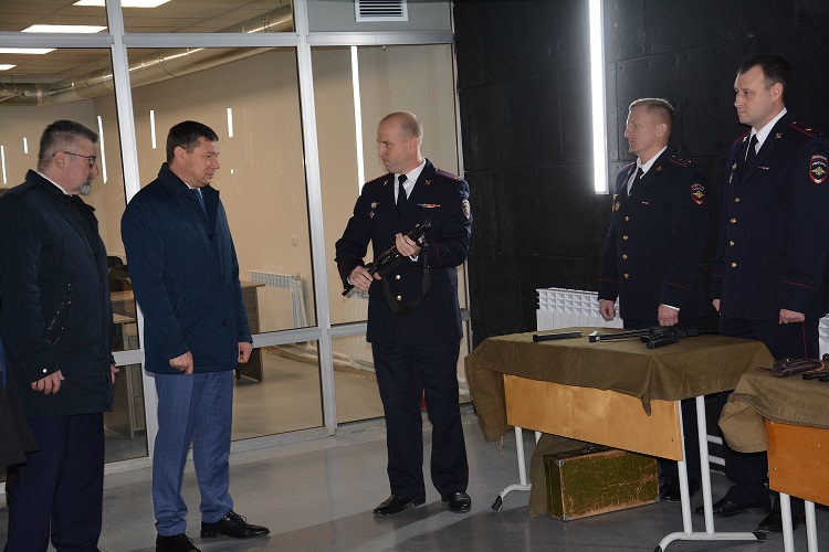 После церемонии перерезания традиционной алой ленты первые лица региона осмотрели обновленные помещения, где сотрудники отдела профессиональной подготовки продемонстрировали боевое оружие, стоящее на вооружении органов внутренних дел.