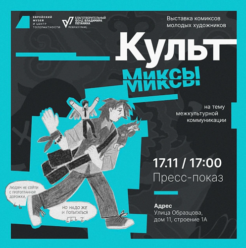 Открытие выставки комиксов о межкультурном общении, созданных командами студентов-художников, психологов и филологов. Проект, поддержанный благотворительным фондом Потанина, демонстрирует, как визуальное искусство помогает преодолевать ксенофобию и налаживать связи между культурами. На открытии выступят подростковые рок-группы «Сарказм» и «Садовое товарищество», а также танцевальная студия «Равновесие» с перформансом «Разъединение».
