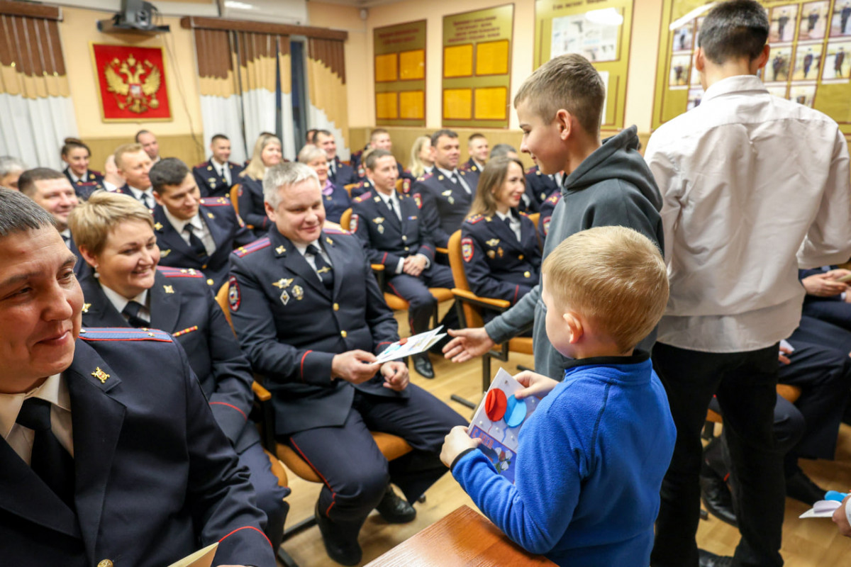 В зале совещаний УМВД юные жители региона подарили стражам порядка открытки, которые заранее сделали своими руками