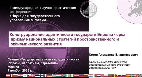 7 ноября 2025 года заведующий сектором экономики ФРГ Центра германских исследований Института Европы РАН А.В. Котов выступил на II международной научной конференции Президентской академии «Наука для государственного управления в России».