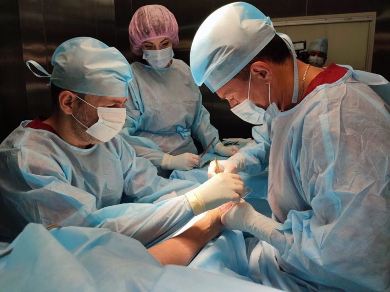 Лечение началось с устранения синдактилии — рубцового сращения пальцев. Микрохирурги аккуратно разделили пальцы, а для закрытия образующихся дефектов кожи провели аутодермопластику. Кожу для трансплантации взяли с передней брюшной стенки пациента.