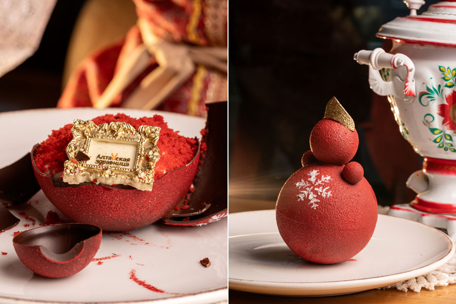 Отдельная позиция фестивального меню – десерт, созданный совместно с «Ново-Николаевским шоколадным домом Бриля» и спа-проектом «Алтайская здравница». Шоколадная неваляшка скрывает внутри нежный мусс, бисквит на основе «красного бархата» и клюквенное конфи с кедровым орехом. Каждый день среди нескольких десертов присутствует один, дающий гостю возможность получить сертификат на спа-программу.