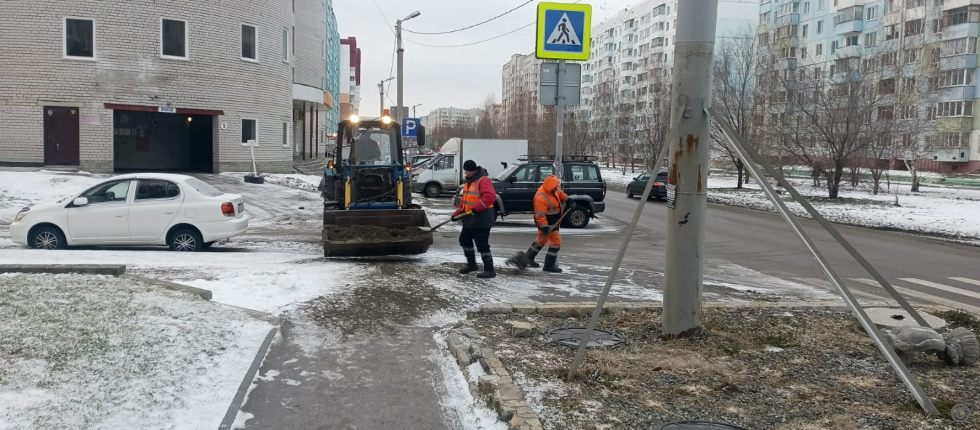 В Октябрьском районе управляющие организации проведут очередной комплекс мероприятий по обработке дворов песчано-солёной смесью. По состоянию на 10 ноября 2025 года коммунальные службы привели в порядок 86 придомовых территорий, к работам привлекли 187 дворников.