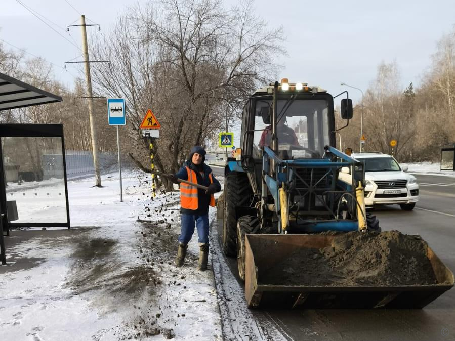 В связи с дождем, мокрым снегом и резким перепадом температур в Барнауле наблюдается подмерзание поверхностей дорог и тротуаров. Для обеспечения безопасности движения общественного транспорта, личных автомобилей и пешеходов дорожная служба проводит посыпку противогололедными средствами улично-дорожной сети.